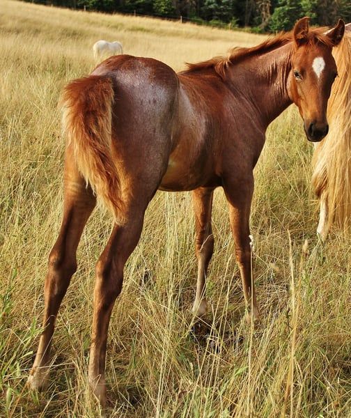 Love ist ein Speed Racking Horse - eine noch selten hier in Deutschland vertretene Gangpferderasse aus den USA die aber immer mehr an Beliebtheit gewinnt. Ein großes Gangpferd das je nach späterer Ausbildung über Rack bis ins hohe Tempo verfügen kann und damit zu den schnellsten Töltern gehört, dabei aber in der Regel vom Kopf her immer klar und regulierbar bleibt . Rack ist gleichzusetzen mit dem Tölt . In den USA werden sie gerne auf Speed Rack Rennen und auf gerittenen Show Gang Turnieren eingesetzt. Bei uns finden sie immer mehr Anhänger im Bereich Freizeit, Wanderreiten und Distanz aber auch auf Gangpferdeturnieren werden sie immer öffter erfolgreich vorgestellt. Wie z.B. auf der Internationalen Deutschen Meisterschaft im Gangreiten die 2025 im August stattgefunden hatte. Wem der Isländer zu klein ist er aber das Töltfeeling nicht missen möchte hat mit dem Speed Racking Horse einen vergleichbar vielseitigen Allrounder zur Option. Love ist 2023 bei mir geboren, sie überzeugt durch ihren netten höflichen lieben Charakter. Von Fohlen an wächst sie artgerecht, robust und gut sozialisiert in alters und Rasse gemischter Herdenhaltung auf. Sie kennt keine Boxen- oder Einzelhaltung und wird auch nicht in eine solche Haltungsform abgegeben. Wird regelmäßig Entwurmt und Hufe gepflegt. Ist geimpft gegen Tet. und Infl. Ekzemfrei Gesund und unverletzt Hufpflege- und Verladefromm Aktuell ca. 153 Stm groß und sollte ein Endmaß um die 158 Stm erreichen können, denn mit ihren knapp 2,5 Jahren ist ihre Entwicklung noch nicht fertig. Love gehört zu den wenigen Speedys die auch über Pass verfügen. Sie ist also Fünfgangveranlagt. Dabei dominieren ihre gut ausgeprägten sicher vorhandenen Grundgänge. Als Fohlen hatte sie auch vermehrt Pass und Tölt gezeigt. Aktuell sieht man den Tölt mindestens im Übergang, da sie aktuell den Trab bevorzugt. Sie hat entsprechend ihrer Rasse etwas mehr Temperament welches sich bis dato immer gut händeln lässt und zeigt das sie dennoch immer klar im Kopf ist. Halftern, Führen, anbinden und geputzt werden macht sie alles brav und vorbildlich mit. Ihr Vater ist reinerbig auf das Gait Gen getestet, dadurch hat Love zwingend auch das Gait-Gen geerbt. D.h. Sie hat genetisch den Tölt und Pass verankert. Sie hat Papiere als Speed racking horse die natürlich vorliegen. Ihr Vater ist Hengstbuch 1 geführt, zusätzlich in der USA RHBBA und SHOBA registriert. Material geprüft mit 8,8 für Tölt und im Sport vorgestellt. USTA gezogen aus der Pacerlinie , Enkel von Jet Laag mit Weltrekord 1999. Ihre Mutter ist eingetragen in das deutsche Zuchtbuch und auch in den USA RHBAA registriert , mit Speck einem 15 x Worldchampion und Choice's Flashy Cut 5 x World Champion und Multi World Grand Champion hat sie einen sehr guten Background. Gerade die Speck Linie ist bekannt für seine schönen Pferde mit gutem Charakter und natürlich vorhandener Töltveranlagung. Halbgeschwister zu Love wurden schon angearbeitet und angeritten und zeigten sich dabei sehr lernfreudig, lieb und leistungsbereit. Ihre Zukunft liegt im Bereich Freizeit bis Distanz/Sport und auch zur Zucht von Speed Racking Horses kann sie eingesetzt werden. Love ist Red Roan oder auch gerne Strawberry Roan genannt, also ein Rotfarbwechsler und sieht daher zu jeder Jahreszeit anders aus. Gerne kann man sie bei echtem Interesse kennenlernen. Eine Aku kann der Käufer gerne durchführen lassen. Wer ein größeres Gangpferd mit gutem Charakter sucht hat hier die Chance auf ein echtes Schätzchen. Ich gebe sie nur ab da ich noch ihren Halbbruder und ihre Mutter habe und einfach keine Zeit haben werde sie später auszubilden und zu reiten. Sie wird aktuell noch zum Fohlenpreis abgegeben steigt aber aufgrund der Aufzuchtkosten mit zunehmendem Alter