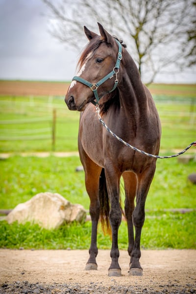 Dark chocolate brown with a long mane – if you're looking for a larger gaited horse, you're in the right place. Beautiful Jolene was born with us and grew up in a herd environment. She has never been injured or ill and has always been well cared for. Her mother comes from the USA and belongs to the famous Speck lineage, renowned for its excellent character and natural tölt. Her father, also from the USA, is our breeding stallion and our favorite riding horse for all disciplines – whether for shows, competitions, or trail riding in large groups. A tölt specialist with a golden temperament, suitable for all occasions. Jolene is currently in basic training, familiar with lunging, double lunging, riding with a longe line, groundwork, trail obstacles, and is ridden in walk, trot, and tölt on the riding arena, in the round pen, and in the terrain. She is very people-oriented, affectionate, eager to learn, with a moderate temperament. She already exhibits plenty of tölt, especially during transitions, although this is not yet specifically trained in this phase of her education. We see her future use mainly as a luxury leisure horse, a partner for trail riding and long-distance rides, but she could also be suitable for IGV Sport / Gaited Working Equitation. Thanks to her good basic gaits, she can also be ridden in dressage, in addition to her gait. A versatile four-gaited horse with many options. Due to her current training level, she is not suitable for beginners and still requires further education. She can be purchased at a fair price for her new owner to continue her training according to their wishes or can remain with us for further schooling. Jolene has full papers and will be sold with a clinical pre-purchase examination. A stress test for heart and lungs was already performed before starting her under saddle and was excellent. Her teeth have been recently treated. We wish for Jolene to find a place in a species-appropriate herd environment with her heart human. The price will increase with additional training.