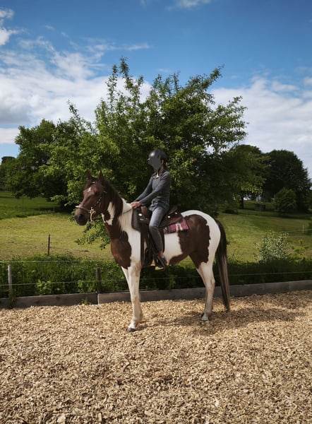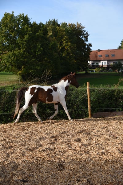 Zum Verkauf steht eine wunderschöne Speed Racking Horse Stute, geboren im Jahr 2021. Die zuckersüße Maus will immer gefallen und begeistert durch ihr freundliches Wesen, sie schließt sich gerne und schnell dem Menschen an. Sie hat aktuell ein Stockmaß von 152 cmund wird vermutlich noch kräftiger. Sie ist 5 Gänger, bisher 4 Gängig geritten, wobei sie den Tölt gerne anbietet. Der Name (Action Perfection) ist nicht Programm, sie hat eher einen ruhigen höflichen Charakter. Den Namen bekam sie von ihrer hohen Vorderhandaktion im Tölt. Sie ist fein geritten, kennt die Lektionen (Seitengänge, Schulterherein) am Boden und aus dem Sattel, ist vor allem im Gelände unterwegs. Eigentlich eine unerschrockene neugierige Stute, die sich die Welt gerne anschaut. Wenn sie von etwas neuem überrumpelt wird, kann sie aber schon mal noch einen Satz machen. Das hat sie als sie jung war öfter gemacht, mittlerweile eher selten! Ich schätze sie in ein paar Jahren als Verlasspferd ein. Eine coole Socke mit der man die Welt erobern kann. Sie wird aktuell auch von 10 jährigen geritten. Sie ist ein sehr höfliches Pferd dass den Anschluss zum Menschen sucht. Freiarbeit ist ihre Lieblingsaktivität. Sehr verschmust. Sie überzeugt durch ihre geschmeidigen Gänge und ihre angenehme Gangart, ideal für Freizeit, Turnier oder Zucht. Ihr Tölt ist sehr bequem, daher ist sie sicher für gemütliche Ritte oder sogar Wanderritte geeignet. Bei Interesse und für weitere Informationen stehe ich gerne zur Verfügung. Ein Besichtigungstermin ist nach Vereinbarung möglich. Hierfür nehme ich 30€ um Reittourismus vorzubeugen.