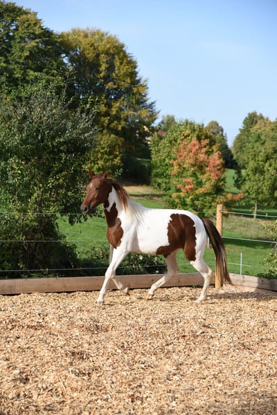 Te koop staat een prachtige Speed Racking Horse merrie, geboren in 2021. Het lieve meisje wil altijd graag gefallen en enthousiasmeert door haar vriendelijke aard; ze sluit zich snel en graag aan bij de mens. Ze heeft momenteel een stokmaat van 152 cm en zal waarschijnlijk nog sterker worden. Ze is een 5-ganger, tot nu toe 4-ganger gereden, waarbij ze graag Tölt aanbiedt. De naam (Action Perfection) is niet programmatisch; ze heeft eerder een rustige, beleefde karakter. Ze kreeg haar naam vanwege haar hoge voorhandactie in het Tölt. Ze wordt fijn gereden, kent de gangen (zijgangen, schouderbinnenwaarts) zowel aan de longe als onder het zadel, en is vooral in het terrein actief. Eigenlijk een onbevreesde, nieuwsgierige merrie die de wereld graag wil verkennen. Als ze echter verrast wordt door iets nieuws, kan ze nog wel eens een sprongetje maken. Dit deed ze als jonge merrie vaker, maar tegenwoordig zelden! Ik schat haar over een paar jaar als betrouwbaar rijpaard. Een stoere dame waarmee je de wereld kunt veroveren. Ze wordt momenteel ook door een 10-jarige bereden. Ze is een zeer beleefde pony die contact zoekt met de mens. Vrijetijdstraining is haar favoriete activiteit. Ze is erg knuffelig. Ze overtuigt door haar soepele gangen en haar aangename gangwerk, ideaal voor recreatief gebruik, wedstrijden of fokkerij. Haar Tölt is zeer comfortabel, waardoor ze zeker geschikt is voor ontspannen ritten of zelfs trektochten. Bij interesse en voor meer informatie sta ik graag voor u klaar. Een bezichtiging is mogelijk na afspraak. Hiervoor vraag ik €30 om toeristische ritten te voorkomen.