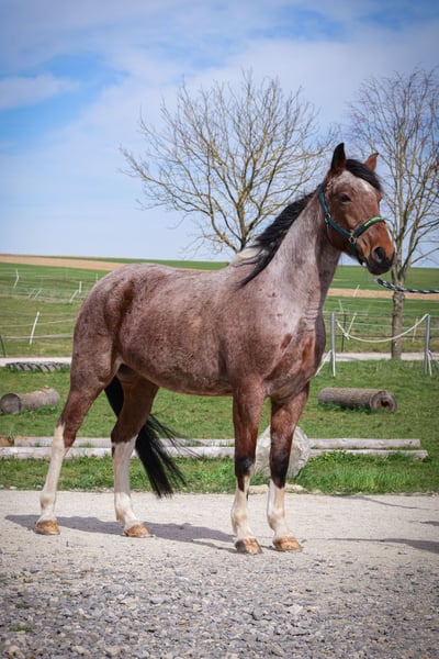 Nitros Dirty Bomb, affectionately called Toffee by us, is a four-gaited mare born in the USA with a refined temperament. She is currently in further training. Having already had foals, she has proven to be a good mother and is also of interest for breeding purposes. Toffee demonstrates a lightly responsive, clear-takted tölt. Her basic gaits are also of good quality. A hardworking horse that works with motivation and is always eager to improve. Her training is being reinforced and still offers room for development. A charming mare with a distinctive presence for riders seeking a stable horse with solid gait quality and further growth potential. Video available. Due to personal reasons, the owner is seeking a new home for this wonderful mare. Space before price.