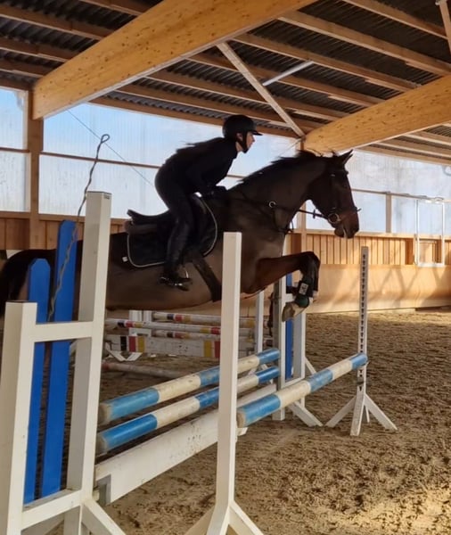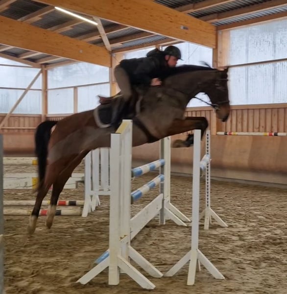 Zum Verkauf steht ein sympathischer 6-jähriger brauner Wallach von Origi d’O x For Pleasure x Don Juan. Aktuell misst er ca. 1,66 m und ist in Zangersheide eingetragen. Otto wurde 3-jährig angeritten, durfte anschließend noch einmal in Ruhe zu Hause nachreifen und befindet sich nun wieder im Beritt. Dabei zeigt er sich jederzeit sehr kooperativ, brav und unerschrocken. Er möchte seinem Reiter immer gefallen, denkt mit und versucht, alles richtig zu machen. Diese Einstellung macht ihn zu einem sehr angenehmen Partner in der täglichen Arbeit. Er verfügt bereits über erste Turniererfahrungen inklusive Platzierung und zeigt sich auch außerhalb des Vierecks bzw. Springplatzes sehr zuverlässig. Die vorhandenen Videos unterstreichen dies besonders schön, unter anderem mit einer jugendlichen Reiterin beim zweiten Mal Reiten sowie bei seiner zweiten Runde auf dem Geländeplatz, die er souverän und unkompliziert absolviert. Otto bringt damit beste Voraussetzungen als Nachwuchspferd für den Spring- und Vielseitigkeitssport mit. Er überzeugt durch seine Rittigkeit, guten Grundgangarten, seine positive Arbeitseinstellung und seine unerschrockene Art. Ein guter TÜV liegt vor, sowohl aus dem Alter von 3 als auch 4 Jahren. Zusätzlich sind Freilauffotos als 2-Jähriger vorhanden. Ein ehrliches, engagiertes Nachwuchspferd für Reiter, die ein braves Pferd mit Vermögen, Einstellung und Perspektive suchen.