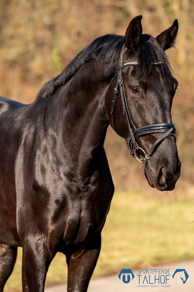 Il nostro Denver è un vero gioiello. Nonostante la sua stazza, è incredibilmente tranquillo e gentile nel maneggio. Denver dispone di tre eccellenti andature di base, che gli permettono di intraprendere una futura carriera nel dressage senza problemi. È inoltre completamente coraggioso e ama molto andare anche in campagna. Grazie al suo carattere fantastico e al trotto regolare e ben seduto, potremmo addirittura immaginarlo nel salto ostacoli.