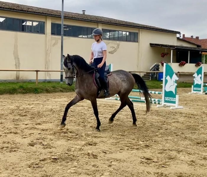 Marquez is a horse of exceptional lineage. His mother Cattinara is a Lipizzaner - originally from the Federal Stud Piber in Austria. He was born in 2021 and has grown up in a young horse group with 24-hour pasture in summer and loose housing in winter. Marquez presents himself as a stylish gelding with three expressive basic gaits. Currently, he has a beautiful gray-silver color. His pedigree predisposes him for dressage, but he also shows potential in jumping during training. His mother Cattinara (Maestoso Bellamira x Conversano Mantua) has competed in A-level jumping and A-level dressage with children. His father Morricone III is successfully competing in dressage up to the S class. His five-year-old half-brother has already proven to be a great horse for re-entry. Instagram: sportpferdezuchtdr.bartels