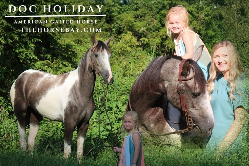 Doc Holiday is a 3-year-old Registered American Gaited Horse standing a stout 14.2 hands tall, short-coupled and built to travel! Doc has been from the Louisiana bayou to the Smokies, and all over the state of Kentucky this summer! From extreme 4-5 day pack-in trail rides to a leisurely ride to the creek on a hot afternoon, he’s your man! He has been shown and exposed to anything you can think of. He’s been ridden and fooled with by riders of nearly every skill set, from our 3-year-old little girl to experienced riders, and he’s never faltered a step! Doc comes with the best of both worlds! If you want to sit back and ride at a walk, he’s ready; if you wanna step up and stir some dust, he’s there for it! He aims to please his rider, and I’m here to tell you that is precisely what he does! He’s the perfect gentleman on the ground, never crowding or pushing, always maintaining a respectable distance. Doc is broke to hobble and/or ground tie if needed on those long trail rides! Doc is the most consistent young horse I’ve ever sat on, it’s not every day you’ll find a true 3 year old that’s the same every single time a saddle hits his back! Doc is just that dude. Ride him every day or once a week, and you’ll get the same quality 4-beat saddle gait every single time your backside hits leather! Don’t miss out a truly remarkable, young broke horse with quite literally his entire life ahead of him!