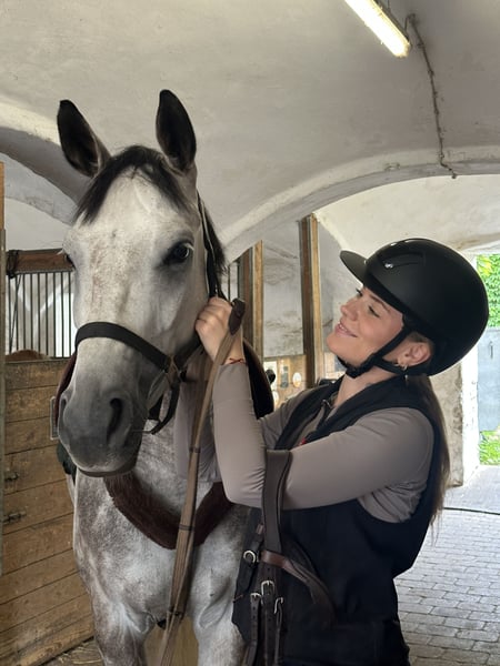 Chili è una moderna e splendida amazzone di 6 anni, dotata di un'incredibile ambizione, desiderio di performance e talento naturale. La sua genealogia di alta qualità si riflette chiaramente nelle sue capacità, nel suo atteggiamento e nel suo istinto naturale per il salto. Questo potenziale è stato sviluppato in modo mirato e adeguato alla sua età da una cavalla di livello S, con un chiaro focus su un’educazione di base solida e duratura. Grande attenzione è stata posta sui fondamentali, sia nel salto che nel dressage. In campo, Chili si distingue per la sua visione d’insieme, la tecnica e il grande talento (già presentata con successo fino a livello A** in competizioni). È ambiziosa, desiderosa di muoversi e motivata – un vero e proprio "powerhouse" con gioia di lavorare. Restando sensibile, fine nelle risposte e con un’andatura leggera, rappresenta la combinazione ideale per amatori ambiziosi che cercano un cavallo sportivo performante ma mansueto. Nel rapporto quotidiano, Chili è una vera gemma: molto affettuosa, coccolona, socievole con le persone, compatibile con altri cavalli, e ovviamente affidabile al carico e al ferratura. Grazie alla sua eccezionale genealogia, è inoltre molto interessante anche per la riproduzione. Per Chili desideriamo trovare nuovi proprietari motivati, che sappiano apprezzare il suo desiderio di performance e vogliano crescere insieme a un “powerhouse” talentuoso e mansueto.