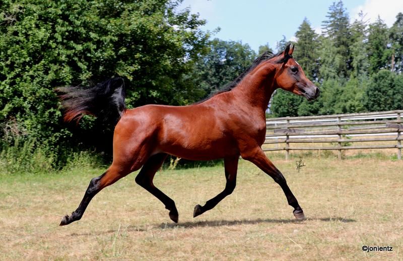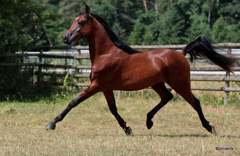 Talal El Mujid est un magnifique jeune étalon arabe bai, issu d’un élevage de premier ordre avec des lignées très intéressantes. Il incarne les qualités typiques de cette noble race : intelligence, grâce et douceur. Il possède une excellente conformation et un bon fondement, ainsi que des mouvements de premier ordre, ce qui le rend adapté aussi bien à la reproduction qu’aux loisirs. Talal est très charmant, bien socialisé, vit en grande harde et se montre calme et amical dans ses interactions. Il est déjà habitué au licol et à la manipulation en main, et possède un potentiel important pour sa future formation. Si vous êtes intéressé, nous serions ravis de recevoir votre contact afin de partager davantage d’informations et d’organiser une visite. www.goschenhof-arabians.de