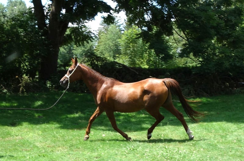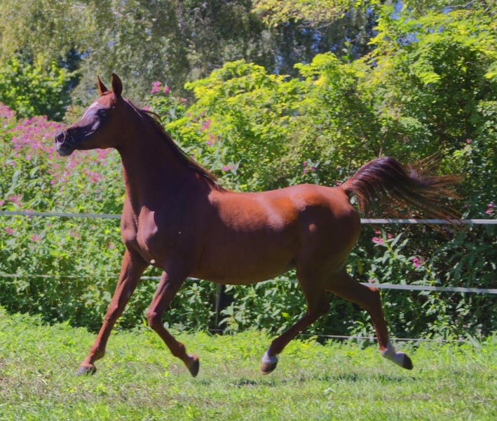 The wonderful purebred Egyptian Arabian mare is looking for her forever home. She is well-behaved, has no vices, is easy to handle, and loves walks. She is already familiar with the saddle and would be thrilled to be started under saddle. She wants to be loved and kept busy. With her affectionate nature, she is also excellent for raising another foal as a mother. With her qualities, she is the perfect leisure partner for enjoyable hours in the stable. If you are interested, please feel free to call or write!