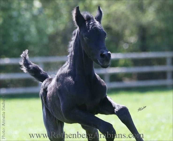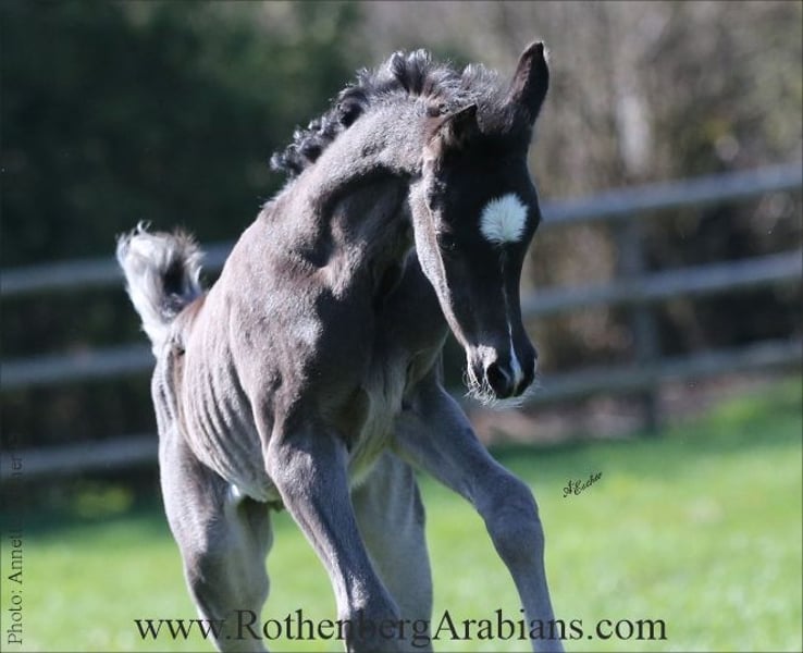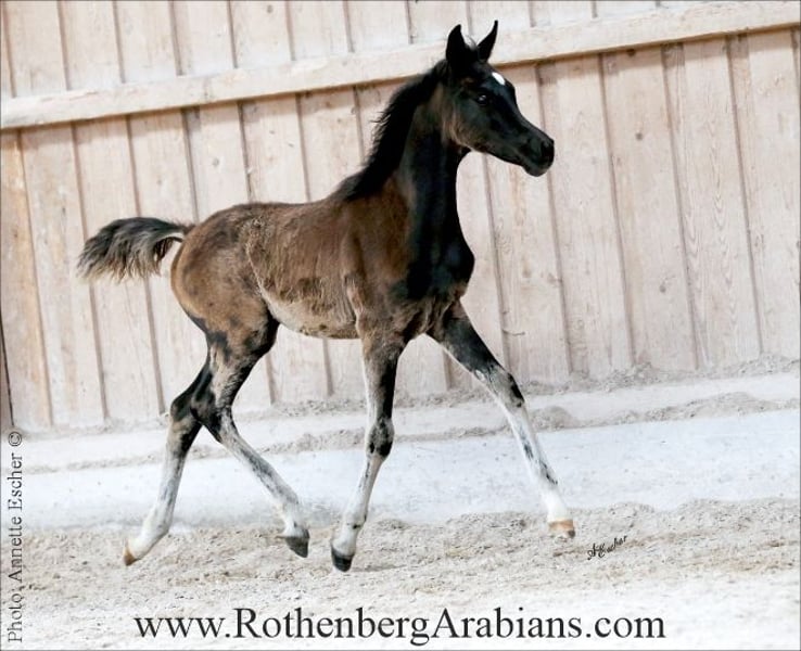 Exotic pretty bay Straight Egyptian yearling filly with black gene for sale! Father is our homebred black stallion GR Madhin (full-brother to our homebred black Champion-mares GR Marietta & GR Marianah; by our black Gold premium foundation stallion Madallan-Madheen), the mother is a daughter of our black Gold premium stallion Maheeb from the same motherline as our “Queen” GR Nashidah! Other exotic typey black, bay & grey Straight Egyptian foals, youngsters and breeding horses for breeding, show and sport for sale! Pearls from worldwide wellknown and successful breeding, famous and proven pedigrees and special people-loving characters! Detailed information, prices and conditions on request, please call at 0049 / 9091 / 3707 or send an e-mail including some information about you - thank you! More information to our breeding-horses and some sale-horses you find at our homepage www.RothenbergArabians.com, other sale-horses (also horses bred and owned by clients) on request! Please also visit us at instagram @RothenbergArabianStud