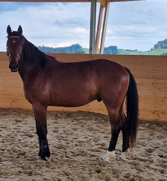 **Verkaufsanzeige: Schweizer Warmblut Wallach, geb. 2021, 175 cm, braun, springbegeistert** Zum Verkauf steht ein beeindruckender Schweizer Warmblut-Wallach, geboren im Jahr 2021. Mit einem Stockmaß von 175 cm vereint er Größe mit einer athletischen Statur, die ihn ideal für den Springsport macht. Valesco hat eine Leistungsstarke Abstammung. Seine Mutter Beau Geste BvR weist Klassierungen bis 1,30m auf. Während sein Vater Van Gogh erfolgreich im Springen bis 1,60m ist. Er besitzt bereits erste Concours Erfahrungen. Sein starker Charakter, verbunden mit einem guten Bewegungsablauf, macht ihn zu einem vielversprechenden Pferd für den Aufbau im Springsport. Der Schweizer Warmblut-Wallach ist gesund und bereit, in ein neues Zuhause umzuziehen, wo er weiter gefördert werden kann. Bei Interesse oder weiteren Fragen stehe ich gerne für eine Besichtigung und Proberitte zur Verfügung. Dieses talentierte Springpferd wartet auf einen engagierten Reiter, der sein Potenzial erkennt und gemeinsam mit ihm neue Erfolge feiern möchte.
