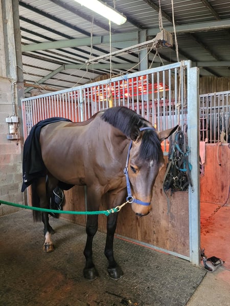 5-year-old gelding by Diamant de Semilly. This year, he competed in the 5-year-old labels in Switzerland, including participation in the Swiss Championship for 5-year-olds. He has plenty of scope and strength, is fearless over fences, and shows a warrior-like attitude. Easy to handle, loads well, and travels smoothly. Radiographs available upon request.