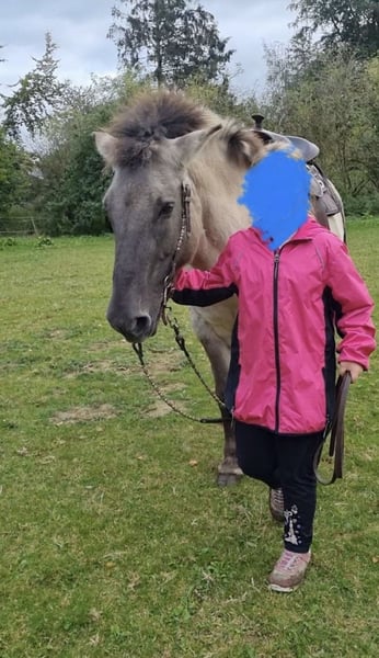 Ich verkaufe meine liebe Pony-Stute, geboren 2010 im Tierpark Olderdissen. Sie ist etwa 1,35 m groß und deckt problemlos Reiter bis ca. 1,70 m ab. Charakter & Verhalten: Eine absolut verlässliche Partnerin, die durch nichts so schnell aus der Ruhe zu bringen ist. Nur bei LKWs und Bussen ist sie etwas vorsichtig – aber niemals panisch oder schwierig. Sie geht nicht durch und ist jederzeit gut händelbar, auch im Gelände. Kinder kennt sie gut und bleibt auch mit jüngeren Reitern ruhig und zuverlässig. Ausbildung & Können: Sie ist fein im Westernstil zu reiten, reagiert sensibel auf Hilfen und arbeitet motiviert mit. Auch Freiarbeit macht sie mit Freude und Konzentration. Gesundheit: Sie hat Sommerekzem, das jedoch mit der richtigen Fütterung und einer Ekzemerdecke im Sommer sehr gut händelbar ist. Sonstiges: Ein ehrliches Pony mit einem großen Herz, das einen liebevollen Platz sucht, wo sie weiterhin gefördert und umsorgt wird. Gerne an eine pferdeerfahrene Familie mit Kindern. Nur in gute Hände abzugeben. Weiteres gerne am Telefon oder per Whatsapp.