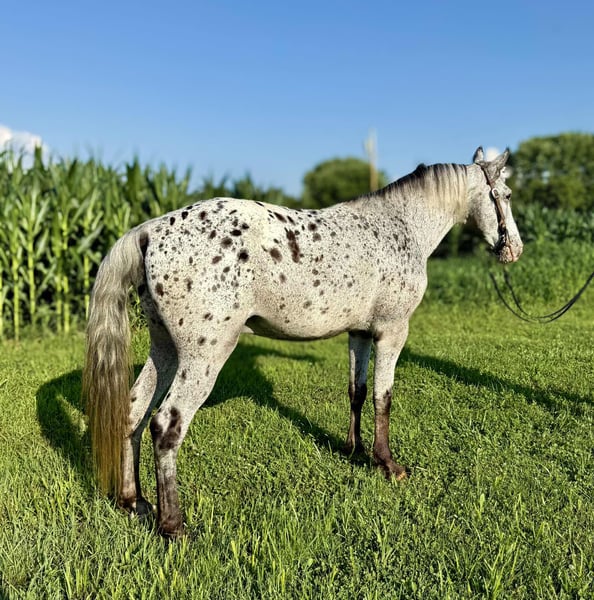 NLINE AUCTION Place your bids at www.PlatinumEquineAuction.com Starting Bid $3500 Auction ends July 27th 2025 Need a new saddle? Check out White Rock Saddles on our website or Facebook Cochise is a handsome 11 year old gaited walkaloosa gelding that’s stands 14.1 hands tall ( technically 14.1 and a 1/2 inch). Cochise has been a lesson horse the last few years helping people of all ages learn to ride gaited trail horses and the lately we have been lucky enough to get to enjoy him ourself, my daughter ( has taken Cochise on several riding trips and loves every minute, as you’ll see in the video Cochise loves people and I find him very trustworthy on the ground, you’ll know what I mean when you see my kids climbing all over him. Aside from that he is a stellar trail mount, he isn’t spooky in anyway and will ride anywhere in the group as well as out alone, he has a very smooth gait and a nice rocking chair canter. Everyone knows that a naturally gaited Appaloosa is like finding hens teeth but I feel to find one with such a good personality makes him even more rare than he already is. He loads in the trailer easily and stands in the crossties for grooming. In fact, he loves to stand in the crossties with the fan blowing on him while the kids pamper him. Cochise may not be the biggest horse out on the trail, but he can definitely keep up with him no issue. Like I said above, I feel like this horse is truly a rare find, and I am proud to be able to represent him.. located in Moscow, OH. Call Zach with Brandenburg Stables 513-508-3684 for more information, to set up a time to come see him or to make a Buy I Now Offer. ONLINE AUCTION Place your bids at www.PlatinumEquineAuction.com Starting Bid $3500 Auction ends July 27th 2025 Need a new saddle? Check out White Rock Saddles on our website or Facebook