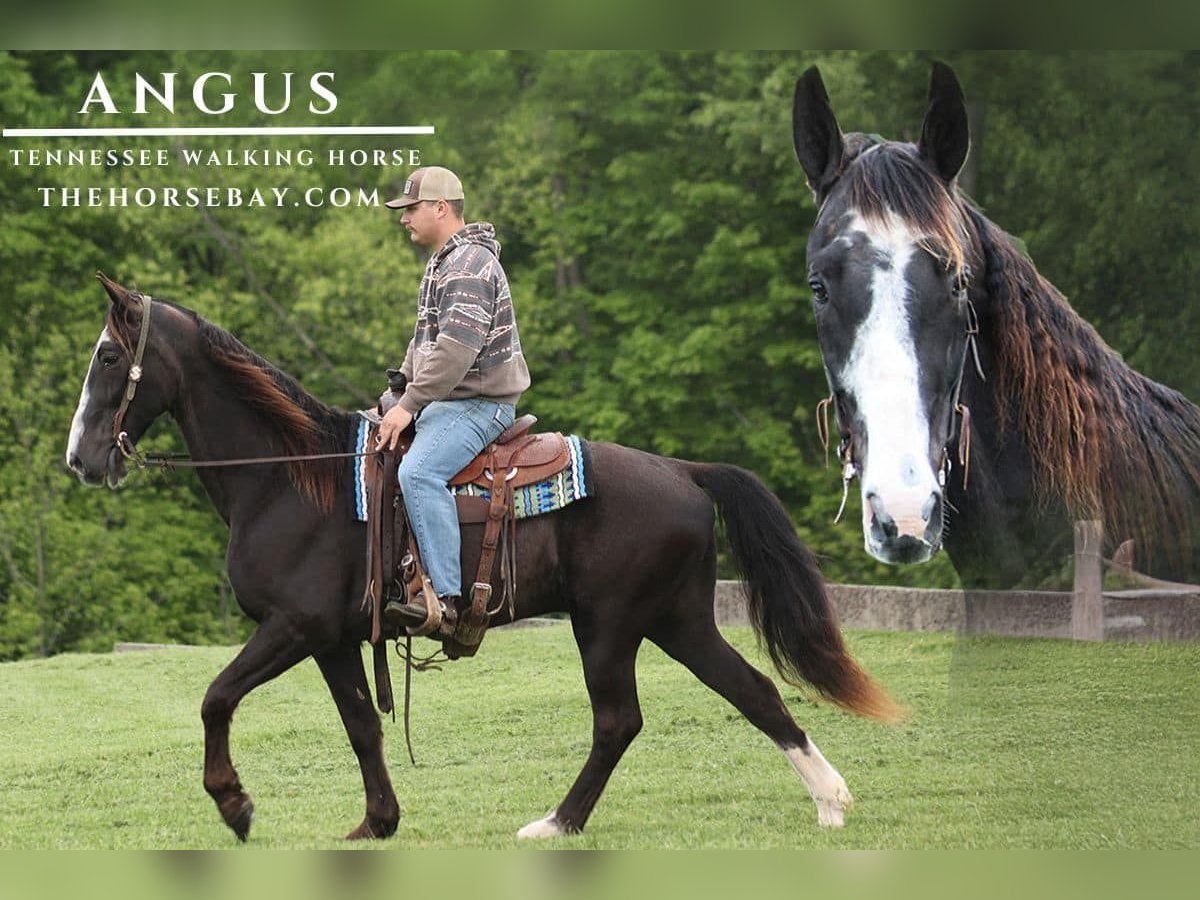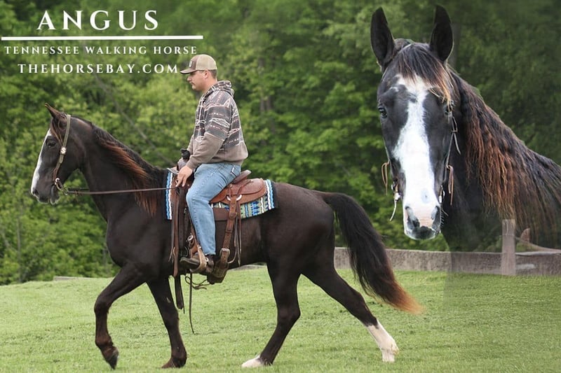 Take a look at Angus, he is a 11-year-old black roan Tennessee walking gelding. He stands 15.2 hands tall. Angus has that 4-beat smooth gait and he stays smooth and comfortable no matter how long you ride. Angus loves trail riding and knows all about rough terrain and steep slopes! Angus is just like a 4×4 he maneuvers up and down the rough terrain/slopes with ease. He crosses creeks, logs, and ditches with ease as well. Angus is very traffic safe. The big rigs and small cars do not phase him whatsoever. He stands to tack, mount, dismount, bathe, and shoe like a gentleman. If you’re in the market for a dependable, ready to hit the trails kind of partner then look no more.