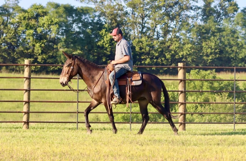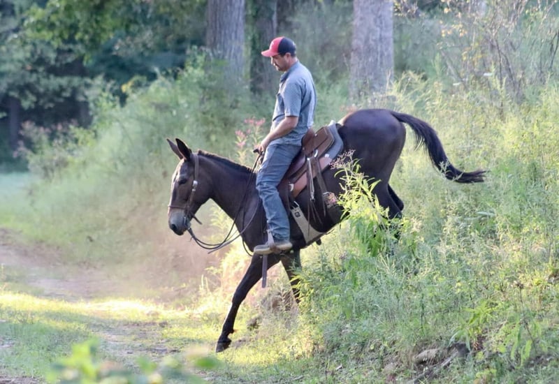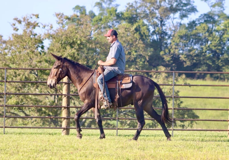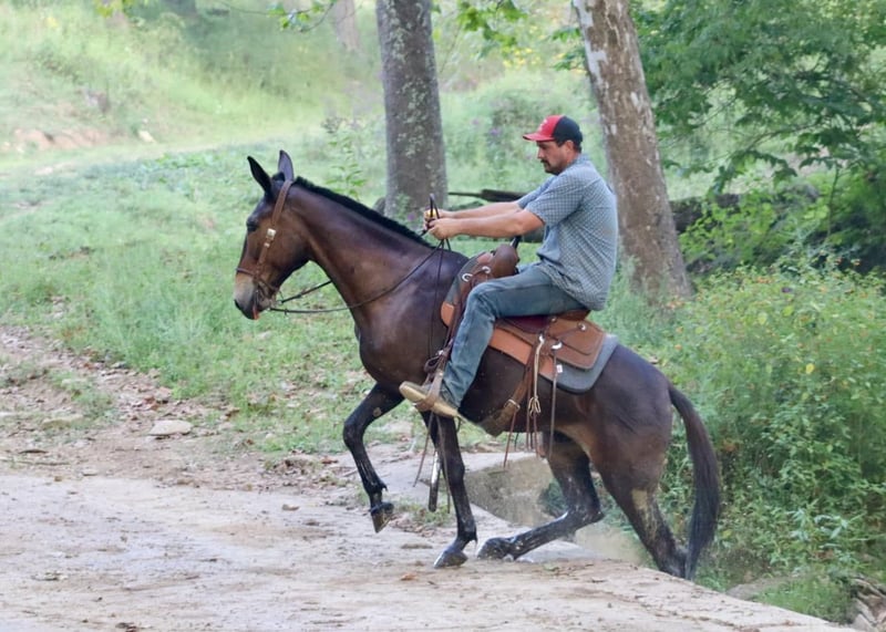 ONLINE AUCTION Place your bids at www.PlatinumEquineAuction.com Starting Bid $3500 Auction ends September 8th, 2024 Need a new saddle? Check out White Rock Saddles on our website or Facebook! Frankie is an 11 year old, 15 hand gaited John mule. If you are a trail blazing, tough trail, all day type of rider, you will love Frankie! We have had so much fun with Frankie on the trails. If you point his nose, he is sure to go and make you feel safe doing it! He is extremely brave, but also careful. He knows how to really rock back and slide down steep banks and hills. Give him his head and he will crawl back up them too. Crosses creeks. Goes through brush. He rides out alone or with the large group. He has a consistent ground covering gear at 8 mph. He’s been in the west and does well in that climate. We’ve taken him to the county fair shows all summer in the gaited mule classes and he has placed well. Frankie is traffic safe. We’ve jumped him up onto the flatbed trailers and driven him around. He jumps obstacles if you like. You name it, he is game for it! For more information, call Brookside Horse Sales Destin 423-310-7111. ONLINE AUCTION Place your bids at www.PlatinumEquineAuction.com Starting Bid $3500 Auction ends September 8th, 2024 Need a new saddle? Check out White Rock Saddles on our website or Facebook!