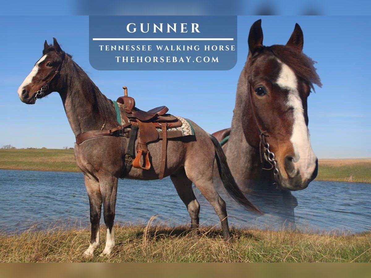 Hey guy and gals this is gunner a 5 year old Tennessee walking horse gelding standing 15.2 gunner has been a trail horse since he was a late 2 year old, he has been trail ridden extensively and shown in lots of fun shows! Gunner is very good at performing the running walk gait with lots of reach and a big head shake, without that ruff camel walk most horses have! He will load and unload, shoe and bathe! Stands for mounting and dismounting and the farrier! Gunner has been field trialed on he will ride anywhere in the gallery you ask him at a running walk and will one step lope that’s sooo smooth! He neck reins and backs up! He will stand on a pick line, traffic safe, goes anywhere you point him no matter how steep the ground or water is! We had squirrels hunted on him lots, he’s good with gunfire! You can lead broke dogs off him, we have led some that was not broke off him and he does fine with it for the most part but is on alert with a dog that’s not been horse broke! If you’re looking for something that is a pleasure to ride and loves his job this is the guy for you!