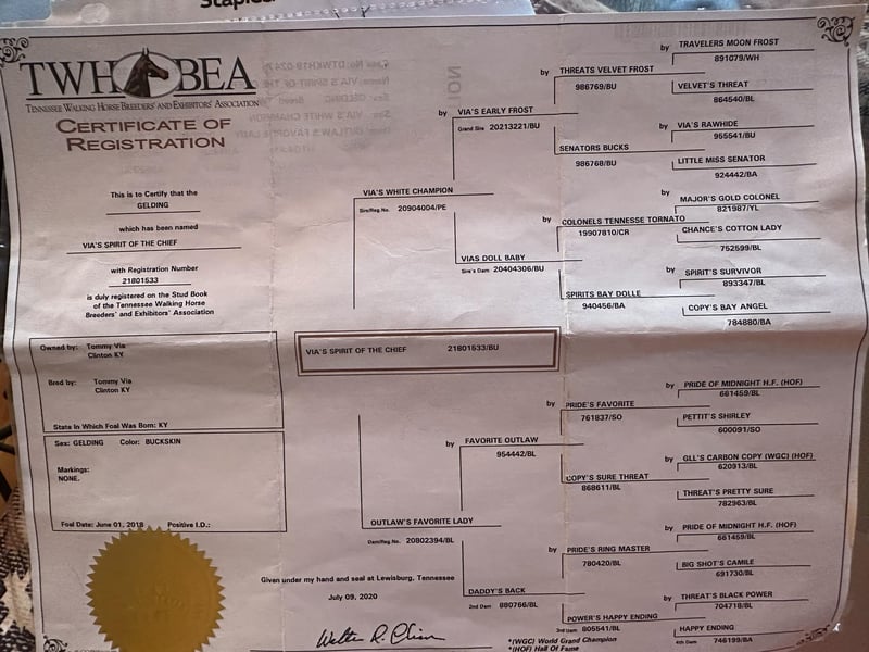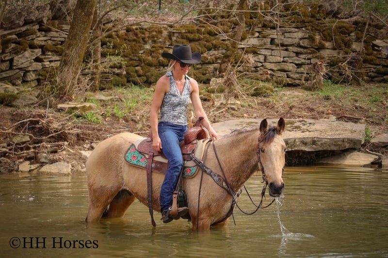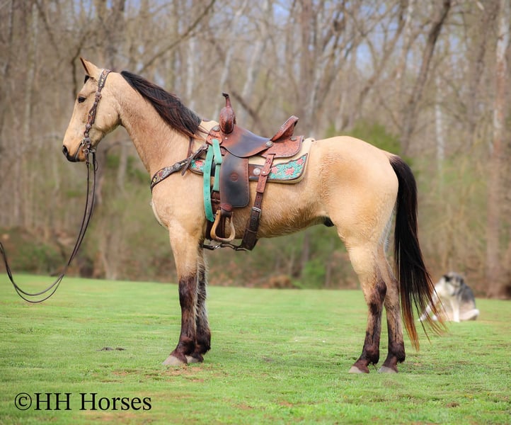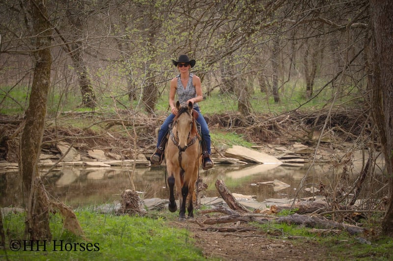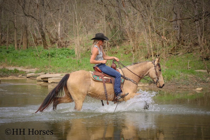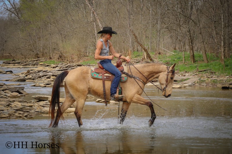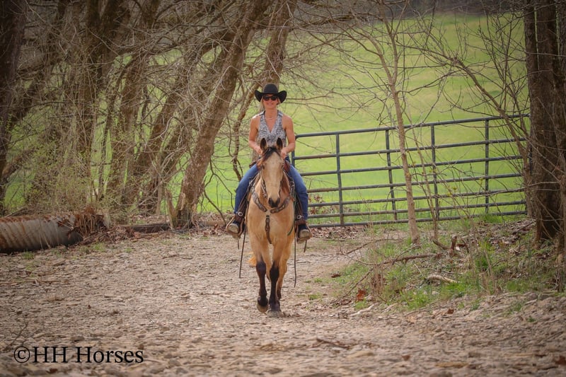 ONLINE AUCTION Place your bids at www.PlatinumEquineAuction.com Starting Bid $3500 Auction ends April 13th, 2025 Need a new saddle? Check out White Rock Saddles on our website or Facebook! This is “VIA’S SPIRIT OF THE CHIEF”, a registered BUCKSKIN TENNESSEE WALKING HORSE GELDING that is well broke and extra fancy. This gelding is naturally gaited and super smooth. He is 7 years old and stands 15 hands tall. He has been through the deep water, up and down in the mountains, and through the timber. He is good to work around and stands to tack, mount, and groom. He will walk out nicely on a loose rein, has a smooth gait, and will canter when asked to. He is easy to stop and easy to turn. He is obedient, well mannered, and he aims to please. If I was going to have a gaited horse to keep to ride, he would be the one. He has color, style, build, and he is sure footed through the rocky stream beds. He is brave and confident riding out alone. This gelding will also ride in a group and doesn’t care if he is in the back or the front. He is fine with dogs, tractors, and side by sides. He is a super cool registered gelding with color, ride, style, and ability. If you have any questions or would like to make a Buy It Now Offer contact HH Horses Erin 304-238-4155 Located in Flemingsburg, KY. ONLINE AUCTION Place your bids at www.PlatinumEquineAuction.com Starting Bid $3500 Auction ends April 13th, 2025 Need a new saddle? Check out White Rock Saddles on our website or Facebook!