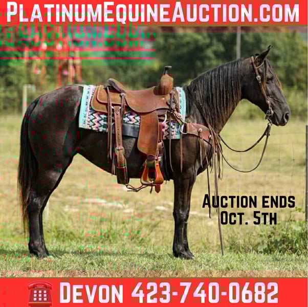 ONLINE AUCTION Place your bids at www.PlatinumEquineAuction.com Starting Bid $3500 Auction ends October 5th, 2025 Need a new saddle? Check out White Rock Saddles on our website or Facebook If you’re in the market for a safe, reliable trustworthy mare to hit the trails on, then Celeste would be a perfect match for you or your family. She is 9 years old and stands 14.2 hands- she is the perfect size and is built like one should be. She is steady and sure-footed on all sorts of terrain. She will cross water, go up and down steep inclines, and won’t shy away from unexpected events. She is easy to catch out in the pasture, tacks up like a breeze, loves a bath and trailers and hauls well. Celeste has been ridden by many different age groups and has never failed at taking care of them. She makes for a fun and smooth ride wherever you point her. She rides fine in large groups or out alone. Celeste has been on numerous over night camping trips and stands good on a picket line. Overall this is a mare that I feel anyone could enjoy and get along with very easily. She has no vices or bad habits. For any further information or questions feel free to reach out- Devon 423-740-0682. ONLINE AUCTION Place your bids at www.PlatinumEquineAuction.com Starting Bid $3500 Auction ends October 5th, 2025 Need a new saddle? Check out White Rock Saddles on our website or Facebook