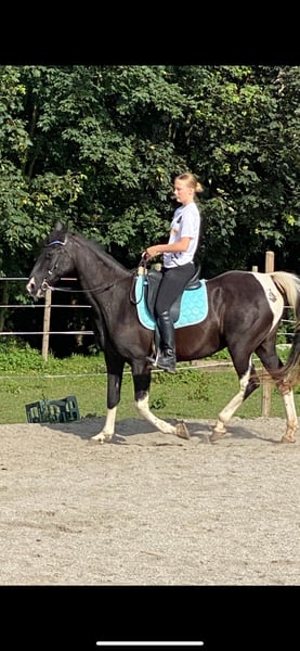 Sally ist eine super Freizeitstute. Mit ihr kann man im Gelände super ausreiten. Sie geht anstandslos über Brücken und ins Wasser. Sie schwimmt und plantscht sehr gerne. Sie geht auch unter Autobahnbrücken durch und neben der Autobahn geritten zu werden macht ihr auch keinen Stress. Am Platz ist sie nicht ganz so motiviert, aber wenn man weiß sich durchzusetzen, dann dreht sie auch hier ihre Runden. Zirzensik macht ihr tierisch Spaß sie steigt ( auch unterm Reiter) Spanischer schritt( auch unterm Reiter) Kompliment nur vom Boden aktuell. Wenn dies weiter gefestigt wird, kann dies bestimmt auch unterm Reiter abgerufen werden. Seitengänge an der Hand vorhanden auch seitlich auf dich zu. Einparken kenn sich und macht dies super anständig. Sie kann geführt auch von kleinen Kindern geritten werden. Dadurch das sie so viel kann evtl nicht für reitanfänger geeignet. Sie lebt aktuell in einem kleinen Offenstall, dass wünsche ich mir auch weiterhin für sie, da sie in der Box sehr gestresst ist. Verladen ist kein Problem. Dieses Jahr war ich das erste Mal mit ihr auswärts in einem Altenheim und ich konnte auch vor Publikum alles abrufen. Auch Klatschen von den Zuschauern machte Sally nicht nervös. Wenn sie Vertrauen gefasst hat, macht sie alles. Sie testet am Anfang sehr gerne aus wie weit sie gehen kann.