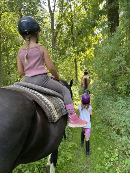 Sally is a fantastic leisure mare. She is perfect for trail riding and handles outdoor excursions with ease. She crosses bridges and water without hesitation, enjoys swimming and splashing around. She also passes under motorway bridges comfortably, and being ridden alongside highways does not stress her at all. In the arena, she is a bit less motivated, but with consistent leadership, she will happily go her rounds there as well. She has a real passion for classical dressage, performing piaffe (even under saddle) and Spanish walk (also under saddle) – currently only on the ground. With continued training, these movements could certainly be performed under saddle too. She also performs lateral work at the walk, including side-passes towards you. She is familiar with parking and does this very neatly. She can be led and ridden by small children, although due to her versatility, she may not be suitable for complete beginners. She currently lives in a small open stable, which I hope will remain her home, as she becomes very stressed in a box. Loading is no problem. This year, I took her out for the first time to a retirement home, and I was able to perform all exercises in front of an audience. Clapping from spectators did not make her nervous. Once she has built trust, she is willing to do anything. She tends to test her limits at first to see how far she can go.