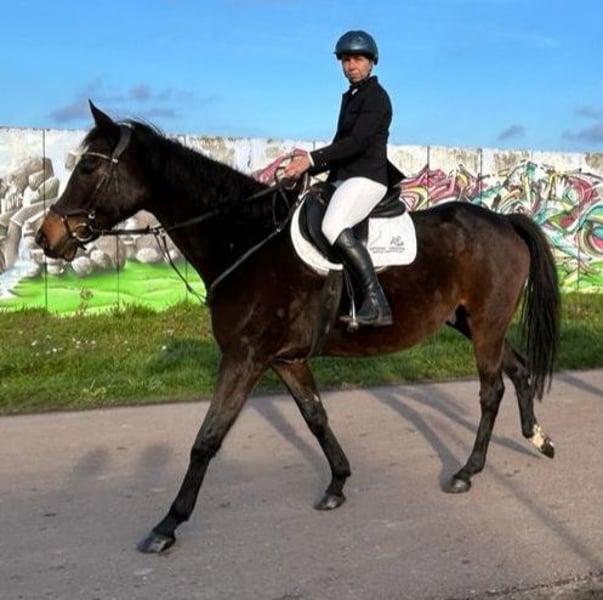 We are looking for a new home for our gelding. He is a 12-year-old dark bay gelding with three excellent basic gaits. He is comfortable riding alone or in a group, both in the arena and on outdoor rides. He is shoe-free and currently barefoot. He is kept in a mixed herd with an open stable system and 24/7 hay supply. He has been ridden recreationally by myself (37 years old) and my daughter (13 years old) both in the indoor arena and on trails. He is always well-behaved and manageable. He strives to please at all times and is eager to learn. Thanks to his friendly and charming nature, he is versatile and open-minded towards new challenges. We wish for him to find a new family that appreciates his kind and affectionate nature and will continue to support him. If interested or for further information, please feel free to contact me. Viewing and trial riding are possible by arrangement. He can be sold with complete tack if needed (saddle, bridle, blanket, etc.).
