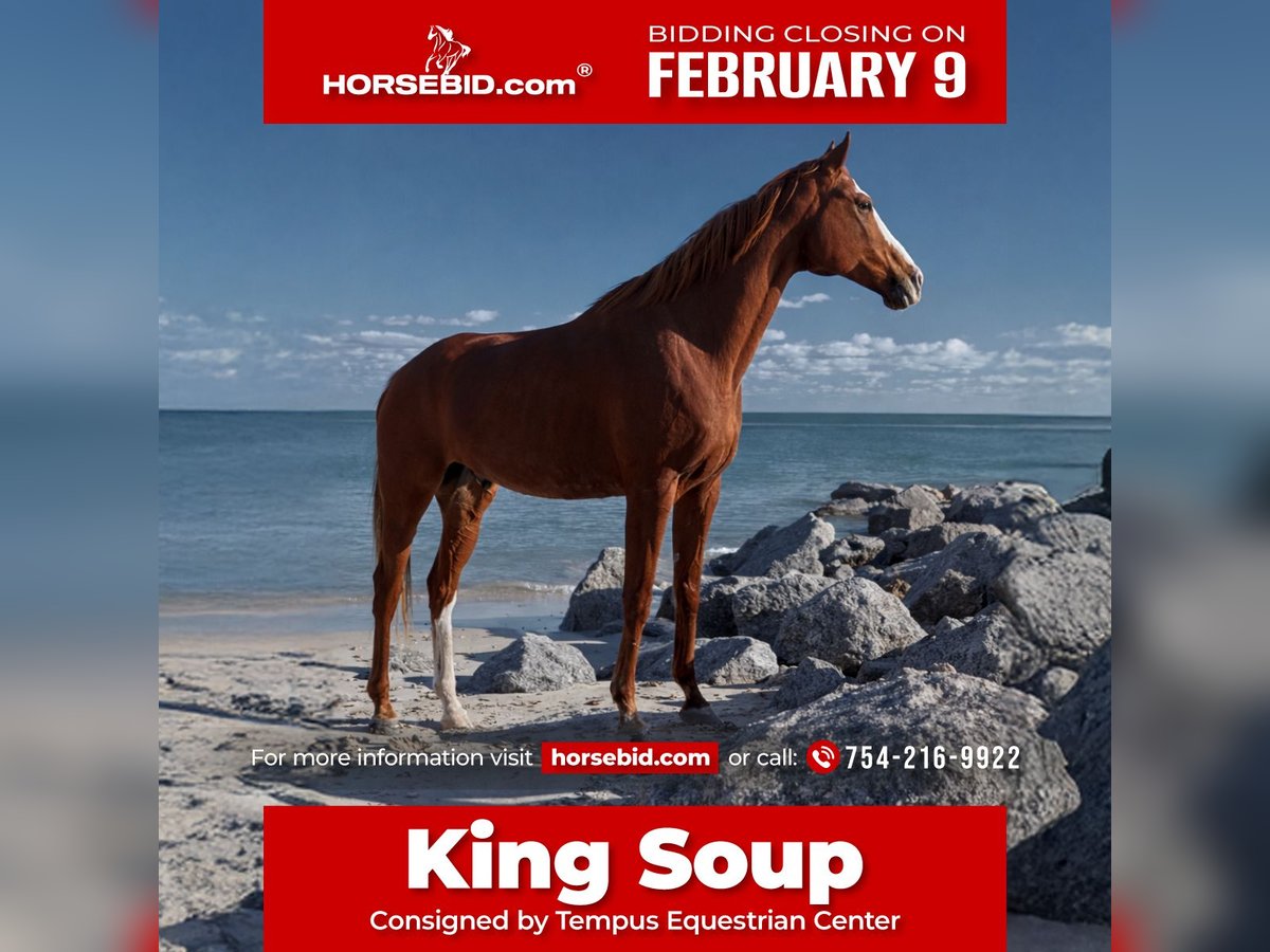 ❤️🔥𝑩𝒆 𝑴𝒊𝒏𝒆 𝐒𝐄𝐋𝐄𝐂𝐓❤️🔥 Happening now thru MONDAY | FEBRUARY 9th - Available EXCLUSIVELY on HorseBid's website! For more details and to register visit: www.Horsebid.com v CONSIGNOR CONTACT: Tempus Equestrian Center 754-216-9922 LOCATION: Southwest Ranches, FL BREED: Thoroughbred REGISTERED: Yes REGISTERED NAME: Renuevo COLOR: Chestnut HEIGHT: 16.2 AGE: 12 GENDER: Gelding RenuEvo Barn name: King Soup 2014 | 16.2h | Chestnut Thoroughbred Gelding RenuEvo is a proven, winning Thoroughbred gelding with an extensive résumé in both show jumping and hunters. He is a seasoned competitor with the consistency, mindset, and reliability that make him a true show ring machine. He has earned top placings at WEC Ocala, as well as at recognized local hunter/jumper shows throughout South Florida, consistently delivering competitive, confident trips in busy show environments. In the jumper ring, RenuEvo has proven himself up to 1.10m, showing scope, bravery, and consistency. In the hunter arena, he produces smooth, correct rounds with excellent rhythm and style. Importantly, RenuEvo has also been successfully shown by children in Short Stirrup divisions at local shows, where he has consistently placed, demonstrating his quiet demeanor, forgiveness, and ability to take care of young riders while remaining competitive. ⭐ Highlights • Proven winner in show jumping and hunters • 1.00–1.10m jumper experience • NSBA registered • Highly successful at WEC Ocala • Consistent placings at South Florida local shows • Successful Short Stirrup mount under kids • Excellent, automatic lead changes • Confident on short lines and technical tracks • Jumps up to 4’ in singles RenuEvo is safe, brave, and unflappable — not spooky, forgiving, and extremely consistent. He has been successfully used in a lesson program and is suitable for kids, amateurs, and professionals alike. On the ground, he is uncomplicated and easy: • No stall vices • Ties, clips, trailers, and stands quietly • Gets along well with other horses • Comfortable living in stall or pasture • Extensive trail mileage, swims, and goes through water He is an easy keeper, currently barefoot with tight, clean legs, and remains the same reliable horse even after time off, returning to work with his usual confidence and work ethic. With a professional jumping background, RenuEvo benefits from correct flatwork, thoughtful conditioning, and consistent training, which support his balance, strength, and topline development. He responds extremely well to correct basics and enjoys having a job. In addition to his competition career, RenuEvo has participated in professional photo shoots and was featured on the cover of a Fort Lauderdale magazine, highlighting his presence, expression, and excellent temperament. Truly a diamond in the rough — with the right rider, a consistent program, and thoughtful care, RenuEvo continues to shine and show his best work. ✨ A versatile, experienced, and winning partner — equally valuable as a competitive show horse and a safe, prize-winning mount for young riders at the local level. 📍 Located in Southwest Ranches, Florida