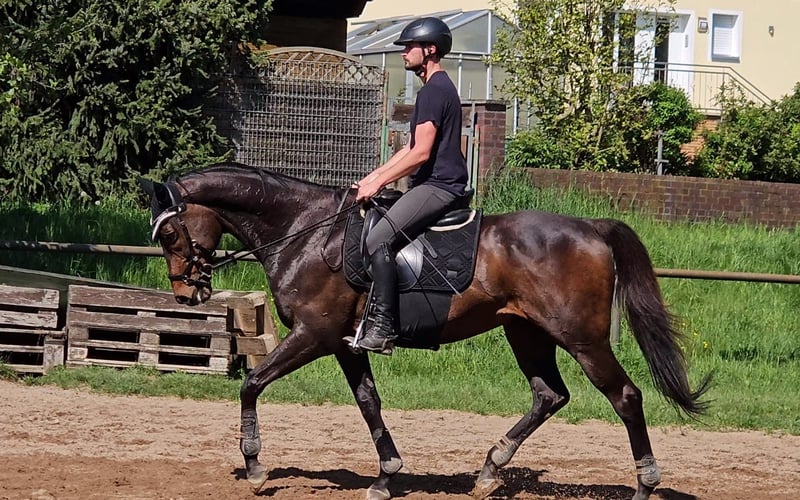 Verkauf braves Freizeitpferd/Lehrmeister Changing Guard XX Englisches Vollblut 1,70m Stockmaß 13 Jahre Changing Guard ist ein zuverlässiger und ausgesprochen braver Partner für ambitionierte Freizeitreiter, Amateure oder Umsteiger Mit seinem ausgeglichenen Wesen und seiner angenehmen Rittigkeit vermittelt er seinem Reiter jederzeit ein sicheres Gefühl. Er überzeugt besonders durch seine Leichtrittigkeit und seine ehrliche Arbeitseinstellung. Changing Guard möchte seinem Reiter gefallen und ist dadurch ein idealer Lehrmeister, der seinem Menschen viel Sicherheit und Vertrauen gibt. Auch im Gelände zeigt er sich vorbildlich: brav, gelassen und unkompliziert – sowohl allein als auch in der Gruppe. In der täglichen Arbeit begeistert Changing Guard durch seine Motivation und Vielseitigkeit. Er zeigt gute Arbeit in der Dressur, arbeitet konzentriert und zuverlässig mit. Ebenso bringt er Freude an der Stangenarbeit mit und bleibt dabei stets klar im Kopf und angenehm zu reiten. Nicht für den Turniersport geeignet. Anfragen bitte per WhatsApp, danach gerne telefonisch. +49 152 22359408