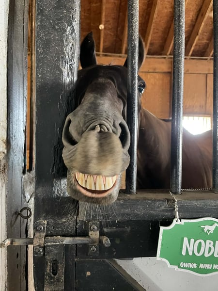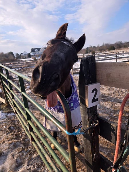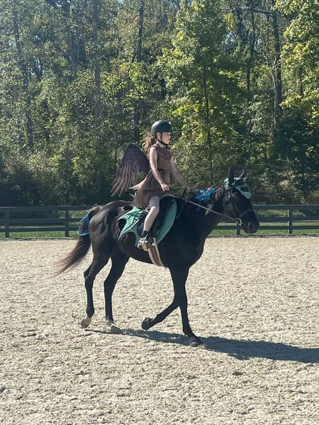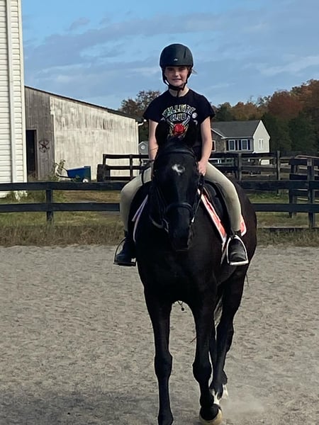 Noble is a 2011 16.1h jet black thoroughbred gelding. He had an extensive racing career until making his way out to Virginia and landing in a lesson program. He is a barn favorite with his silly personality and need for daily snuggles. Noble is a great low level packer, going to numerous dressage schooling shows and lower level jumping shows. Despite being in a predominantly english program, he easily switches to western! Noble rides both in and out of the arena with no problem. He is currently being ridden by a junior, schooling first level movements. Stands for farrier and vet, trailers perfectly. Located in Northern Virginia.