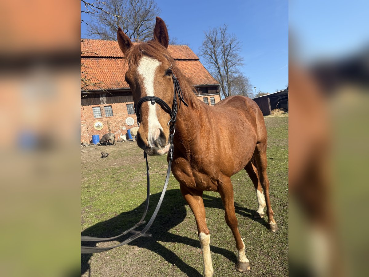 Schweren Herzen gebe ich meine 4 1/2 jährigen Vollblut Wallach, aufgrund meines Unzuges und damit fehlender Zeitlicher Kapazität ab. Valou ist ein englisches Vollblut mit einem Stockmaß von 160cm. Er ist angetritten, lässt den Reiter gut zu und zeigt sich stets kooperativ. Altersbedingt hat er natürlich noch viel Lern- und Entwicklungspotenzial. Valou ist ein sehr sensibler und feinfühliger Wallach und etwas für die erfahrene Reiterhand aber mit etwas Geduld und Einfühlungsvermögen, kann er ein super Partner in allen Lagen sein. Er kennt sowohl den Schmied, Tierarzt als auch den Anhänger und lässt diese gut zu. Auch Arbeit auf dem Platz oder im Gelände sind ihm bekannt. Momentan steht er in einer bunt gemischten Herde aus Ponys und weiteren Großpferden, dort integriert er sich gut und zeigt ein tolles Sozialverhalten - Er kennt sowohl Offenstall, als auch Boxenhaltung und kommt mit beidem gut klar. Zubehör wie Sattel/Trense und diverse Kleinteile können auf Bedarf mitgegeben werden. Es sind keiner Verletzungen oder Vorerkrankungen bekannt. Mir ist wichtig das er seinen Mensch findet, der sein Potential erkennt - daher Platz vor Preis. Dies ist kein Notverkauf.