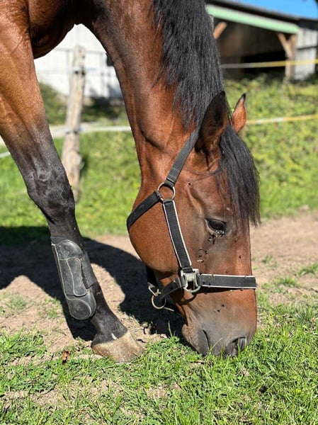 Schöner, tragender Wallach, PS, 5 Jahre alt, 1,63 m. Hat noch nie an Rennen teilgenommen. Respektiert die Zäune, sozial im Umgang mit Artgenossen. Er besitzt großes Potenzial im Springreiten. Bewegt sich ruhig beim Anbinden, beim Putzen und bei der Pflege. Ausgezeichnet im Gelände, unerschrocken, geht problemlos durch Wasser. Lädt gut auf und reist zuverlässig im Hänger und LKW. Aktueller Impf-, Wurm- und Hufschmiedstatus, Papiere und Heft sind vorhanden und auf dem neuesten Stand. Unterbringung im Paddock, Box oder in der Offenstallhaltung. G 4/5