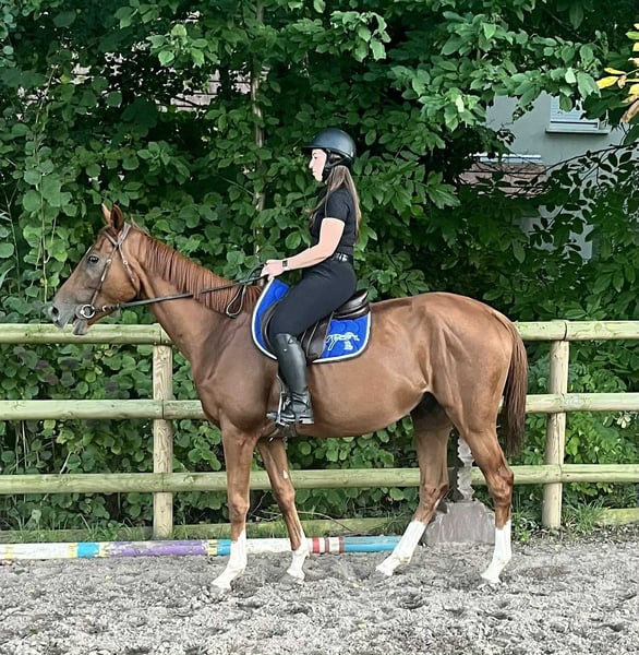 Klacz, PS, urodzona 27.04.2021, 167 cm Łagodna i przyjazna dla człowieka Świetnie sprawdza się na zewnątrz, jest elastyczna i ma bardzo piękne chody Szanuje ogrodzenia, jest towarzyska wobec innych koni Posłuszna na uwięzi, podczas czyszczenia Jeżdżona w halterze Dobrze znosi załadunek i podróż w przyczepie lub ciężarówce Szczepienia, odrobaczenie, kowal, dentysta we wrześniu 2025, akupunktura 2025, osteopatia 2025, książeczka zdrowia i dokumenty Stajnia, boks, padok G3/4