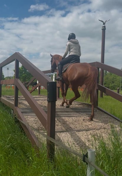 Zum Verkauf steht ein wunderschöner Fuchs-Wallach, geboren im Jahr 2020. Mit einem Stockmaß von 160 cm vereint er Eleganz und Sportlichkeit. Der Wallach ist ein echter Allrounder. Ob Dressur oder Springen, Trail oder Ausritt, er ist immer überall mit viel Freude dabei. Sein freundliches Wesen und seine angenehme Art machen ihn zu einem idealen Freizeitbegleiter. Verkauf direkt vom Züchter incl. Zubehör wg Aufgabe der Pferdehaltung. Transport ins neue Zuhause kann übernommen werden.