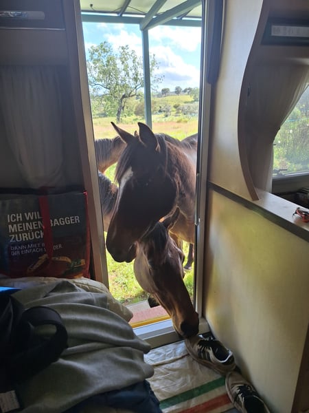For sale: This 9-year-old mare by Lawman (FR) out of Rain Dancer (IRE). She had a few starts on the racetrack but was retired because she showed no interest in competing at the front. She is healthy and fully rideable once her riding muscles have been rebuilt. Her intended purpose was breeding, but this will not happen as her owner has lost interest in producing offspring. She is very easy to handle but somewhat food-oriented. She does not require shoeing and is kept here in a very robust open stable environment. She has not been spoiled with any special muesli, powders, or other exotic feeds; she thrives on grass, hay, and, if necessary, crushed barley. Minerals and salt are of course provided. She ranks quite high in the herd hierarchy. Currently, she is located in Spain. Two additional mares are also for sale: 1. By Highland Reel (IRE) out of Midnight Mystic (GB), 6 years old, bay 2. By Soldier Hollow (GB) out of Wild Angel (IRE), 11 years old, bay Listings will follow shortly. Feel free to contact us with any questions.