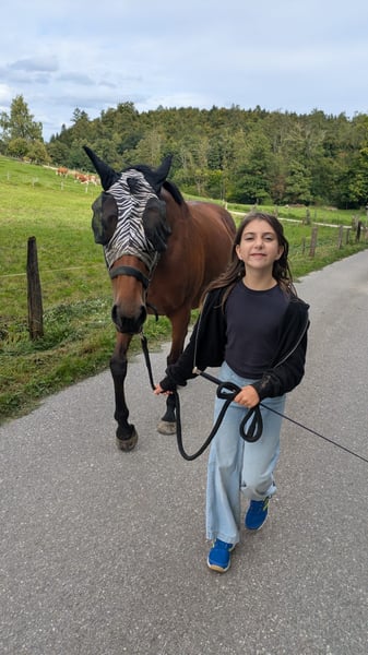Wir suchen ein neues Zuhause für unsere englische Vollblutstute Bailey, geb 2014, ca. 1,65m. Bailey ist nicht einfach nur ein Pferd, sie ist eine echte Persönlichkeit und ein absolutes Herzenspferd für "ihren" Menschen. Was sie besonders auszeichnet, ist ihr toller Charakter. Sie ist extrem menschenbezogen, sucht immer den Kontakt und möchte ihrem Partner Mensch gefallen. Wer eine tiefe Bindung sucht, wird sie in ihr finden. Bei Unbekannten kann sie auch mal "Fremdeln", wen sie kennt und mag, dem wendet sie sich zu. Zudem ist sie sehr intelligent und liebt es, geistig gefordert zu werden – Bodenarbeit und das Lernen von Tricks bereitet ihr riesige Freude und sie begreift Neues oft in Rekordzeit. Im Gelände ist sie eine treue Begleiterin und geht sehr gerne raus. Wenn sie alleine unterwegs ist, zeigt sie sich von ihrer vorsichtigen Seite und orientiert sich an der Sicherheit ihres Reiters. Gemeinsam mit anderen Pferden oder geführt ist das aber gar kein Problem. Bailey ist ein besonderes Pferd für jemanden, der keinen „Sportartikel“, sondern einen Freund fürs Leben sucht. Bailey ist bei uns Voltigierpferd. Auch im Umgang mit den Kindern ist sie sehr liebevoll und vorsichtig. Allerdings würde ich sie keines falls als "Kinderpferd" sehen. Das eine oder andere Mal kommt das Vollblut raus und wenn ihre Bezugsperson unsicher ist oder wird, wird sie auch unsicher. Bailey hat sich letztes Jahr nach einer schweren Hufentzündung das Strahlbein gebrochen und kann daher nicht mehr leistungsorientiert im Voltigiersport eingesetzt werden- was ihr Job bei uns im Verein sein sollte. Die Besonderheit bei einem Strahlbeinbruch ist, dass der Knochen von Gelenkflüssigkeit umspült wird und daher sehr schlecht heilt. Bailey geht es aber gut. Sie ist lahmfrei ohne Medikamente und kann problemlos mit der Herde auf die Koppel. Da der unvollständig geheilte Knochen ein Risiko für eine spätere Sehnenverletzung darstellt, muss sie sehr vorsichtig belastet werden. Wir machen jetzt seid einigen Wochen Reha-Training mit ihr. 2-3 x die Woche 15-20 Min traben an der Longe, Bodenarbeit und Spaziergänge. Einmal die Woche wird kurz im Schritt voltigiert. Unter dieser Art von "Belastung" ist sie stabil. Bailey ist das richtige Pferd für dich, wenn du dir mehr eine Beziehung zu einem Lebewesen wünscht als einen Partner für Sport. Klassisch Reiten, im Sinne von 1h Dressur auf dem Platz, knackige Ausritte oder sogar Springen sollte man mit ihr nicht mehr machen, auch wenn sie nicht lahm ist- einfach damit das so bleibt. Wir wünschen uns einen Menschen, der Baileys Wohlergehen an erster Stelle sieht und sich mit ihr und ihrem Krankheitsbild auseinandersetzen möchte. Wir sind ganz transparent damit und ernsthafte Interessenten können gerne mit unseren Tierärzten sprechen und alle Befunde einsehen. Neben der Vorsicht sie nicht zu überlasten, muss man bei Bailey aber ansonsten nichts beachten. Sie verträgt 24/7 ad libido Heu (ja, wenn sie nichts tut wird sie etwas füllig dabei, aber sie bekommt keine Stoffwechselprobleme), sie braucht keine regelmässigen Medikamnet oder tierärztlichen Behandlungen. Wir füttern ihr hochwertiges Zusatzfutter und sind überzeugt, dass das sehr zu ihren Fortschritten beigetragen hat. In der Herde ist sie unkompliziert, weder rangoch noch besonders rangniedrig. Wir wünschen uns für Bailey Offenstallhaltung und eine möglichst stabile Herdenzusammenstellung. Sie wird Beginn zur Verfügung abgegeben, wenn alle zufrieden sind und man sieht,dass es gut passt, kann eine Übergabe mit Schutzvertrag erfolgen. Wenn du aus dem Umkreis kommst ( max. 100-150km von Dießen) und Bailey dein Interesse geweckt hat, melde dich gerne bei uns! Wir würden uns sehr freuen, wenn du dich kurz vorstellst und uns verrätst, warum dich Bailey anspricht und wie du dir eine Zukunft mit ihr vorstellst. "Letzer Preis" oder ähnliches wird nicht beantwortet. Es kann sich jeder Vorstellen, dass wir jetzt nicht viel Geld für Bailey haben möchten- tatsächlich hat ihr Wohlergehen und ein guter Platz unsere absolute Priorität. Wir finden Preisverhandlungen vor dem Kennen lernen aber ein Nogo. Wenn es dir auf 200€ hin oder her wirklich ankommt, dann solltest du dir kein Pferd zulegen- in Realtion zu dem was ein Pferd an laufenden Kosten produziert, sollte das nicht ins Gewicht fallen.