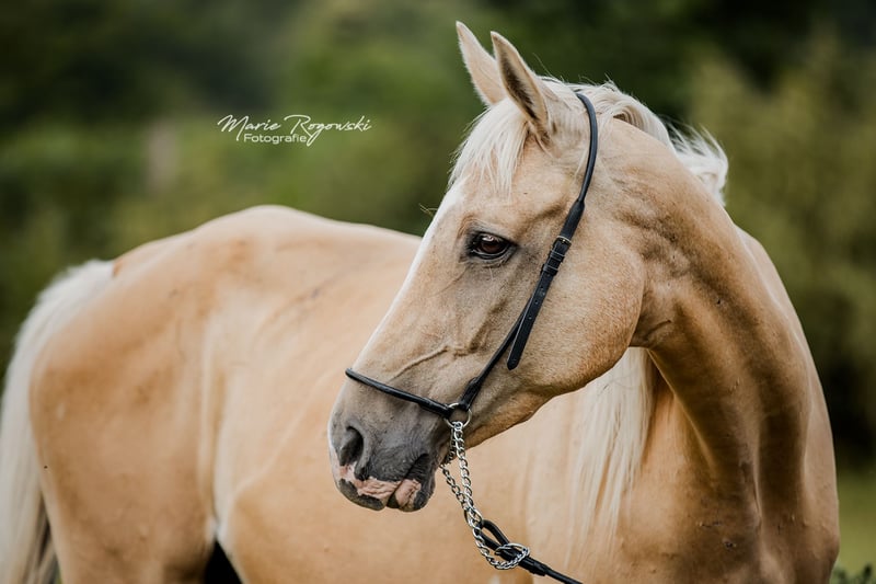 Klacz pełnej krwi angielskiej DANCE IN GOLD xx po RFF THE ALCHEMIST xx x Racey Remarque xx (USA) z własnej hodowli, pojedynczo rozjaśniona (palomino) ze specjalnymi oznaczeniami (DW). Ojciec był pierwszym (podwójnie) rozjaśnionym importowanym ogierem pełnej krwi z uznaniem Trakehnera w Niemczech. Niemieckie i francuskie papiery. Miała cztery bardzo dobre źrebaki, ostatnio klaczkę pełnej krwi Cremello w 2022 roku. Żyje 24/7/365 na zewnątrz solidnie w stadzie na rozległych terenach, przyzwyczajona również do transportu długodystansowego. Barehoofed, odrobaczony, zaszczepiony - odnowiony na życzenie - możliwe jest również leczenie stomatologiczne i osteopatia. Może być pokryty wiosną na życzenie, wybór 10 własnych ogierów pełnej krwi, ciepłokrwistych i półkrwi arabskiej, miejsce do wyżywienia bardzo korzystne. Sprzedaż tylko z powodu likwidacji stada. Klacz jest doskonałym zwierzęciem. Sprzedaż prywatna po zapoznaniu się, zakwaterowanie zostanie zapewnione bezpłatnie. Cena ... symboliczne jedno euro NIE jest ceną sprzedaży. Cena sprzedaży zależy od kupującego i innych ustaleń umownych. Tutaj kupujący może zdobyć punkty na swoją (lub ostatecznie konia) korzyść poprzez dobrą hodowlę i / lub miejsce do życia (bez przekazywania). Wszystkie zwierzęta są dostępne tylko na osobistej prezentacji.