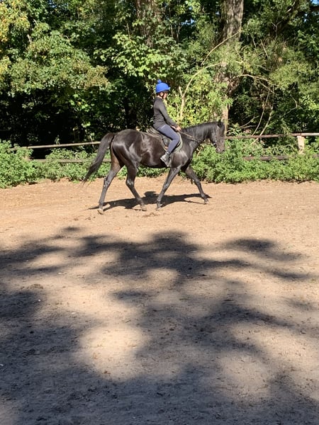 Lara Croft ist eine schwarze Vollblutstute. Sie hatte drei Fohlen und ist jetzt nicht mehr gedeckt worden. Sie ist eine völlig unerschrockene brave Stute. Auf dem Plstz und im Gelände zuverlässig. Im Umgang sehr menschenbezogen. Aufmerksam will sie immer alles richtig machen. Verladen ganz einfach alleine. LKW und Anhänger gewohnt. Gesund und frei von Allergien. Läuft barhufig. Sehr sozial in der Herde. Klebt nicht.