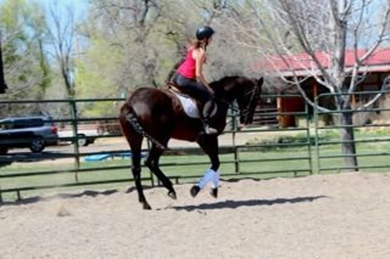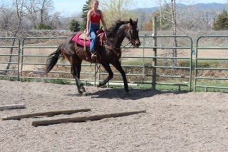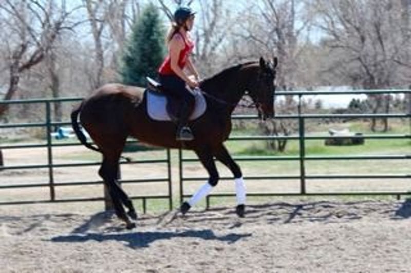 "AVAILABLE ON ONLINE HORSE AUCTION AT www DOT MagicHorseAuction DOT com BIDDING OPEN NOW thru TUESDAY | APRIL 29th - BUY IT NOW AVAILABLE! *Final price will be determined on auction site* CONSIGNOR CONTACT INFO: Dynamite Horses 970-632-3644 LOCATION: Fort Collins, CO "Dearie Dearie is a 17hand- jockey club registered OTTB mare! Dearie is one of the most stunning movers you’ll find, she moves out nicely is extremely smooth and knows where her body is. Dearie rides English/Western/bareback- she is gorgeous, uncomplicated and fun! Dearie has done a little bit of everything, hunter jumper, cross country, western pleasure, trail riding and even has taught a kids lessons. She is not hot or hard to ride and is VERY safe. Dearie has a beautiful frame up/collection- knows her leads and has a stop off of just your voice and seat- We have ridden dearie near traffic and bikes/commotion without an issue! Dearie would be perfect for someone looking for their forever partner to go whatever direction they choose, or even make an awesome lesson horse! See her video and come meet this sweet mare. " "