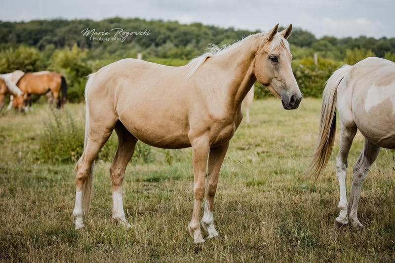Stute | Englisches Vollblut | Palomino | geb. 2020 | aktuell 151 cm PLUME D'OR xx ist eine besonders typvolle, harmonisch gebaute Vollblutstute in der seltenen Farbe Palomino. Sie vereint Eleganz und Ausdruck mit leichtfüßigen, klaren Bewegungen und zeigt sich im täglichen Umgang aufgeschlossen und feinfühlig. Ihr Vater TCF Palladium ist der erste als Smoky Cream geborene Vollblüter weltweit und mehrfach anerkannt, unter anderem bei ECHA-ESV, AES, Zangersheide und IFCE. Seine Nachkommen überzeugen in verschiedenen Zuchtprogrammen durch Typ, Bewegung und Ausdruck. Die Mutter Painted Angel ergänzt das Pedigree durch Linien, die sowohl sportlich als auch farblich interessant sind. Plume d'or xx eignet sich hervorragend für Zucht, Sport oder eine ambitionierte private Nutzung.