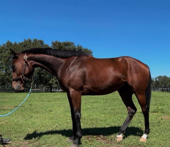 È così dolce, si fa fare ferrature. Si carica facilmente per ogni uscita. Sta migliorando di giorno in giorno. Le ho dato un po' di riposo dopo la pista, poi abbiamo iniziato a fare lavoro al passo e al trotto, sviluppando molta muscolatura e migliorando l'addestramento in sella. Camminiamo, proviamo il trotto e il galoppo in circolo, anche qui e là, e saltiamo qualche ostacolo. Questo cavallo sarà un fantastico hunter, eventer, e anche un ottimo cavallo da salto e dressage. Il nostro primo salto è stato un tronco. Se cerchi un progetto che voglia impegnarsi al massimo, questa potrebbe essere la scelta giusta. Scrivimi in caso di interesse. Grazie.