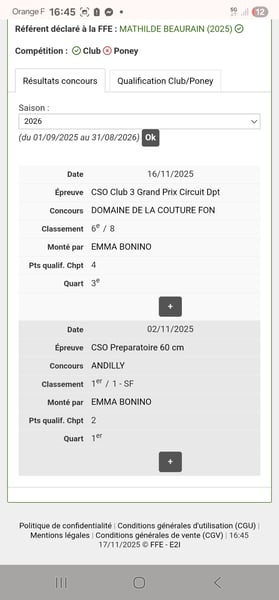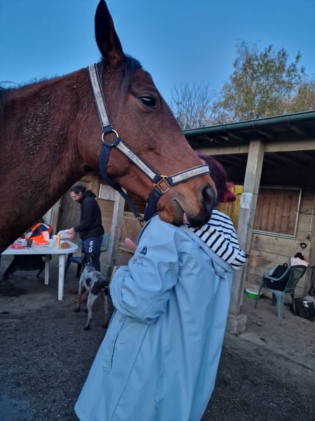🐴 Six bullet points 🐴 This stunning mare is 5 years old and stands approximately 1.63 meters. She is not suitable for a beginner rider, as she is a 5-year-old mare still in training. However, she is adorable and very gentle. Her owner has trained her (working on two tracks – video) and also works with her on ground manners. She goes out riding alone or with company and jumps well (video of her first competition after only her fourth jump in her life). She is a brave mare who enjoys jumping. She has already participated in a few show jumping competitions, managing her stress perfectly and showing agility over the bars. She also works as an animal therapy horse with children and individuals with disabilities (video). She is a very sweet mare who wants to learn and please her human. However, if pushed too fast or treated too harshly, she will let you know. She is fearless and loves to be pampered and cared for. She is up to date on all veterinary care (osteopath, dentist, vaccines, etc.). She will bring joy to a rider looking for a horse to continue training and build a strong bond with. She travels perfectly. She lives in a group paddock in Écouen, 95. A Thoroughbred mare, and proud to say so, as she is full-blooded and could easily become an amateur’s horse later on, thanks to her excellent mentality and character. ⭐️ 5🥕🥕🥕 – adaptable with work, negotiable within reason. Payment in installments possible.