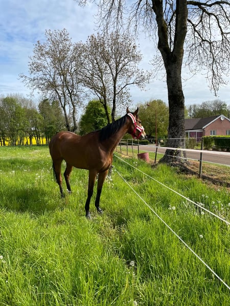Verkoop van een merrie genaamd Cheeteur, een volbloed merrie geboren in april 2018, dochter van Planteur (IRE) en Forward Féline (IRE). Ze heeft een kastanjekleur en meet 1,62 m. Cheeteur kan gemakkelijk in de trailer geladen worden. Ze staat momenteel het hele jaar door op de wei. Ze heeft geen TARE en geen gebreken. Ze is zeer lief voor kinderen. Cheeteur is geschikt voor een ervaren ruiter. Ze kan echter ook verkocht worden om later een fokmerrie te worden. Een bezichtiging is mogelijk in de Marne (51), omgeving Givry-En-Argonne. Voor meer informatie kunt u contact opnemen via 06 59 17 01 74.