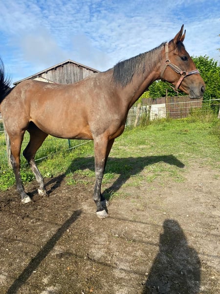 Selling a mare named Cheeteur, a Thoroughbred foaled in April 2018, sired by Planteur (IRE) and out of Forward Féline (IRE). She is bay in color and measures 1.62 meters at the withers. Cheeteur is accustomed to traveling in a horsebox. She currently lives out year-round. She has no vices or health issues. She is very gentle with children. Cheeteur is suitable for an experienced rider; however, she could also be sold to become a broodmare in the future. Visits can be arranged in the Marne (51), near Givry-En-Argonne. For more information, please contact 06 59 17 01 74.
