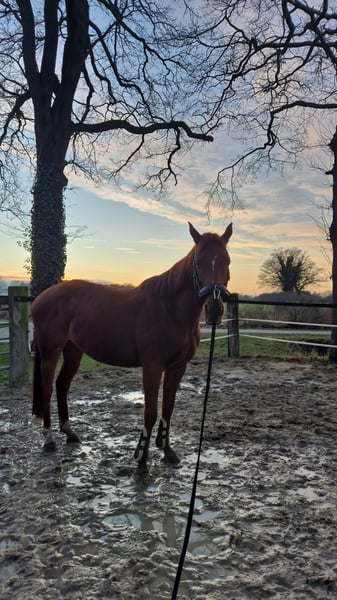 These lines are difficult for me, but for personal reasons, I need to part with my nearly 9-year-old mare Nala (approx. 16.1 hh). Over the past years, we have been through thick and thin, which is why finding a suitable, loving home for her is especially important to me. Nala is an alert, friendly young mare who gets along excellently with all horses—regardless of size, age, or sex. She is very easy-going within the herd: she doesn’t start conflicts and often lets others take the lead. This makes her a very pleasant herd companion. Currently, she is kept in a pasture-like environment with other mares but also gets along very well with geldings. She continues to need a consistent, yet loving and encouraging hand that provides her with security and helps her further her training. Nala has a good go and is therefore more suitable for experienced riders. At the moment, she is barefoot, as she mainly works on the riding arena and is kept on a sand paddock. For rides on stony paths, she wears glue-on shoes in the summer. She enjoys ground work and responds well to commands. After lunging, she comes when called. It is especially important to me that she finds a home where she will continue to be supported and where she is met with patience and heart. She is regularly dewormed, vaccinated, and has a complete equine passport with a good pedigree. If you are genuinely interested and would like more information, I look forward to receiving a message. Priority goes to a suitable home over price; further details gladly via message.