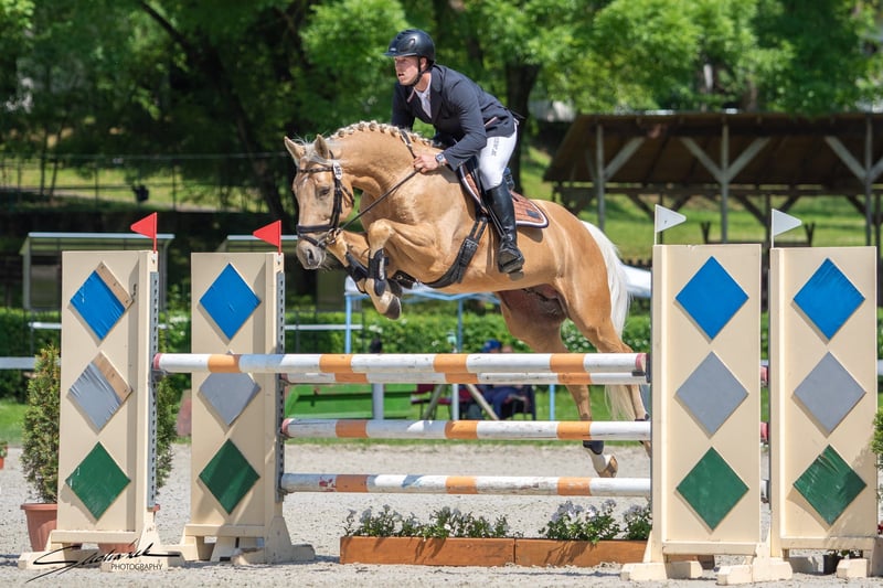 For sale is a licensed stallion approved for Thoroughbred and Arabian breeding, who successfully completed his stallion performance test with distinction in 2021. He consistently demonstrates his willingness to perform in eventing competitions up to level 3*, show jumping over 125 cm, and dressage competitions up to elementary level. This talented all-rounder offers a wide range of skills and is more than suitable for competition in all major disciplines. In handling, the Palomino stallion is well-mannered both at home and at shows, making him suitable for riders of all levels. Don't miss the unique opportunity to acquire this licensed, performance-tested, and successful sporthorse!