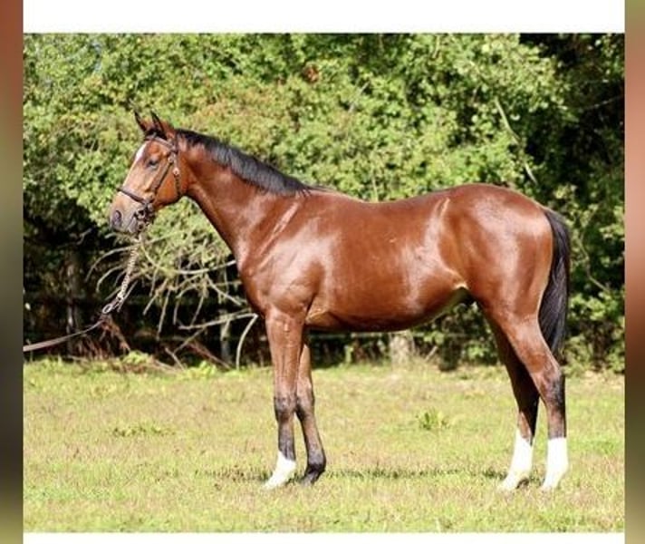 4-year-old very teachable Thoroughbred stallion with good movements. Immanuel Kant is not a particularly stallion-like colt and stands in the pasture with geldings. He has only been worked under saddle a little, learns extremely quickly, and enjoys working. He is easy to ride. Of course, he is familiar with loading onto trailers and trucks. IMMANUEL Kant is in perfect health, has never had an injury, and has no allergies. He has enough ability for all disciplines. He has very good hooves and moves soundly.