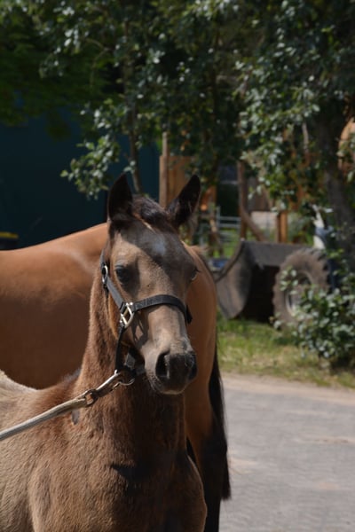 ¡Dashi es una yegua muy bonita y extrovertida! ¡Excelentes líneas de sangre combinadas con un aspecto llamativo! ¡Se pueden ver hermanos completos! El alazán de la foto es su padre, su abuelo es Spotlight Charly... ¡que tuvo mucho éxito hasta los Juegos Ecuestres Mundiales! Ya sea para competición o para ocio, ¡con Dashi se será feliz!
