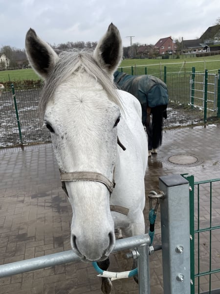 Trakehner Schimmel Wallach 12 Jahre 170 cm groß Avatar x Hirtentanz zu verkaufen. Er wurde regelmäßig auf Tunieren vorgestellt, verladen ist daher kein Problem. Sehr ausgelassen, ruhig und entspannt auch in neuer Umgebung. Er hat E und A Dressur, E Springen gewonnen, A Springen platziert. Im Gelände sehr brav, nicht schreckhaft, kennt Züge, Autos mit Hunden auch kein Problem. Als Freitzeitpferd super geeignet, ein echter Schmusebär. Steht in einem Offenstall mit einer Stute, einem Wallach und einem Shetty zusammen, früher auch in einer Paddockbox. Videos können gerne geschickt werden, gerne unter 01735776379 melden.