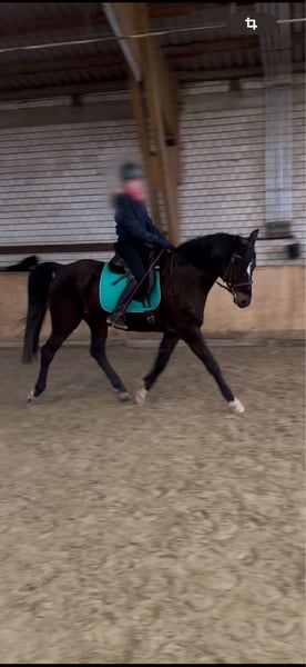 With a heavy heart, we have decided to find a new owner for our beloved Momsi. Milord is an exceptionally affectionate and motivated horse. He always strives to do everything correctly and does his best to earn praise or a treat. Whether it’s dressage, jumping, or trail riding, Momsi is up for anything. He is very eager over jumps and supple in dressage. Unfortunately, we lack the time to do him justice. Price is secondary to his well-being. Not suitable as a beginner’s horse. He is very sociable with other horses, barefoot, and easy to load.