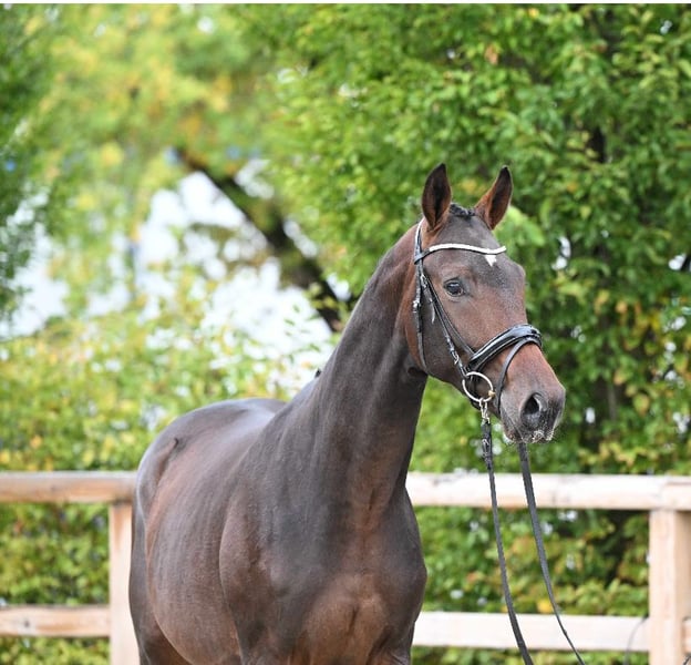 Large-framed Trakehner colt (2½ years old) with impressive presence and promising sporting potential. Currently approximately 16.1 hh. This young stallion impresses with elastic basic gaits, full of drive, rhythm, and natural balance. Already gently lunged and happily free-jumping – always attentive, honest, and with a great sense of overview. Caitano’s dam, St.Pr.u.Pr.St. Chica by Herbstbach – Germanicus Rex, is on the verge of receiving the elite mare title from the Trakehner Verband. She was a 1b prizewinner of the jumping mares at the Federal Mare Show in 2014, as well as reserve champion and best jumping mare of her mare registration. His sire, Santo Scuro, was appointed as an elite candidate in the Trakehner Verband at just five years old – the youngest stallion to receive this distinction. He impresses with rideability, strong character, correctness, and outstanding health status. He completed his 50-day test in Stadl-Paura with flying colors, achieving an overall score of 8.48 as the top three-year-old stallion in his lot. His ratings in rideability and interior (both 9.30) highlight his exceptional character, high willingness to perform, and aptitude for sport. In daily handling, Caitano is people-oriented, affectionate, and very easy to deal with. He is clear-minded, brave, and reliable, with excellent manners and trust in humans. Raised in healthy, species-appropriate conditions with daily turnout and loving care. Regularly vaccinated, dewormed, and presented to the blacksmith. An exceptionally charming young stallion with excellent potential for the future – a true lifelong partner! Caitano is undoubtedly a future candidate for the big arena. Due to his impressive trot and good jumping ability, we can also very well imagine him excelling in eventing. Castration is expected to take place in early November. Feel free to visit our Instagram page Trakehnerhof_hegelerwald: https://www.instagram.com/trakehnerhof_hegelerwald?igsh=YXJtdHE4dndjMmU%3D&utm_source=qr and get an impression of how Caitano has grown up.