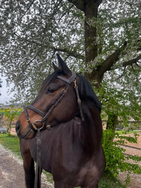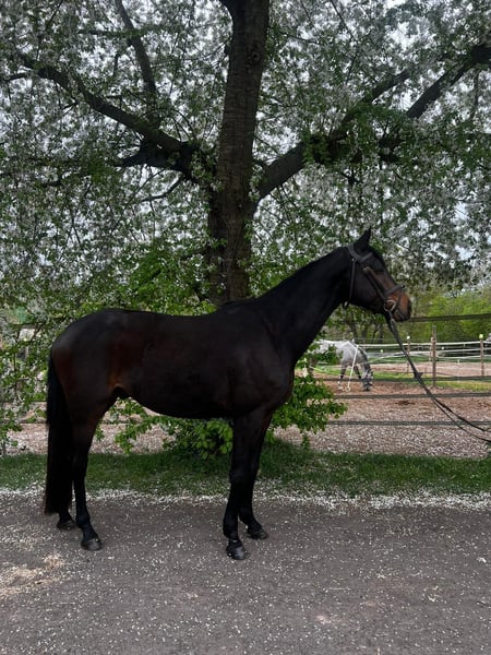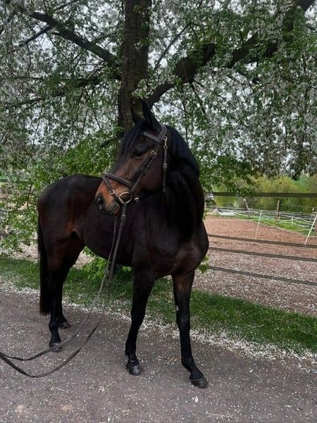Zum Verkauf steht ein schicker, ausdrucksstarker 4jähriger Trakehnerwallach (Speedway/Solero 04/2022) mit einem aktuellen Stockmass von 166cm. Er stammt direkt von der Züchterin und überzeugt durch seine charmante und neugierige Art. After eight stammt aus einer erfolgreichen Dressurlinie. Seine Mutter Arwen la Fee (Solero/Anduc) ist Elitestute im Trakehnerverband und mit über 70 Siege und Platzierungen bis S* erfolgreich. Der Vater Speedway (Schwarzgol/Anduc) ist Sieger des Trakehner TSF Dressurpferdechampionats 2024. After eight läuft seit Februar unter dem Sattel und zeigt dabei sehr gute Bewegungen und Lernbereitschaft. Charakterlich präsentiert er sich menschenbezogen, aufmerksam und neugierig, was die tägliche Arbeit mit ihm angenehm und unkompliziert macht. Er ist dem Menschen zugewandt und zeigt keinerlei Unarten. 20 Röntgenbilder der Beine und des Rückens liegen vor. Ein Reitvideo wird in Kürze erstellt. Die Preisvorstellung liegt bei 20.000 Euro. Besichtigung und Probereiten ist nach Absprache gerne möglich. Der Stall ist in 64823 Kleestadt. Bei ernsthaftem Interesse, melden Sie sich bitte telefonisch unter +49 162 9769780 (Bereiter).